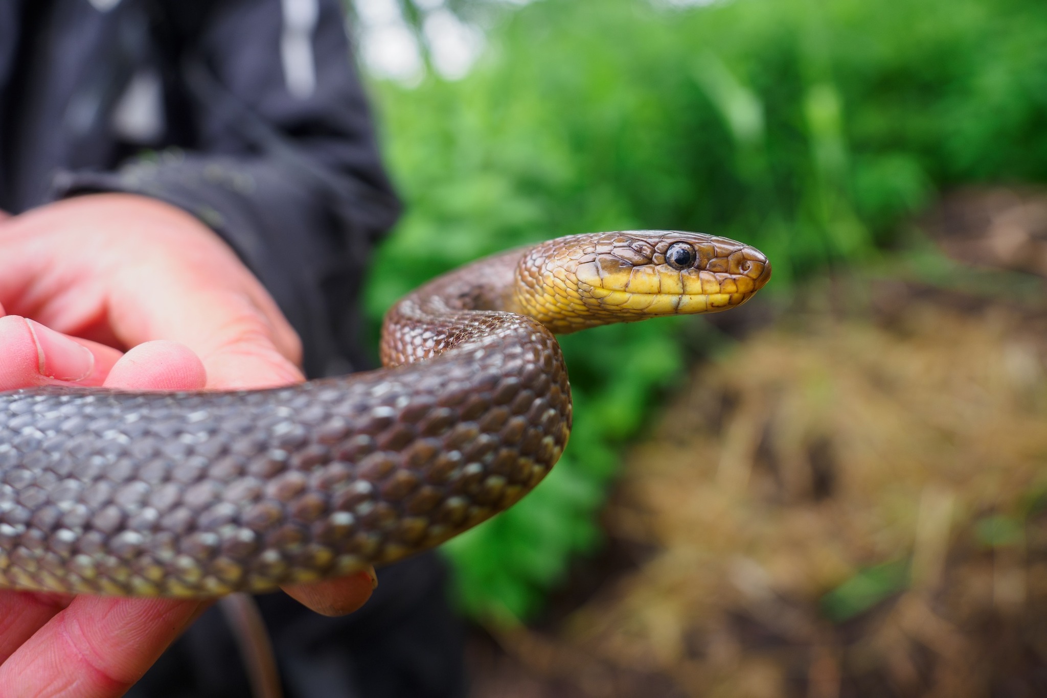 Od prvního nálezu užovky stromové na Kosteliskách uplynou letos v květnu již tři roky. Další pozorování tohoto impozantního hada v ptačím parku přibývala a od začátku sezóny 2024 jsme ve spolupráci s Agenturou ochrany přírody a krajiny ČR přistoupili k systematickému monitoringu.
