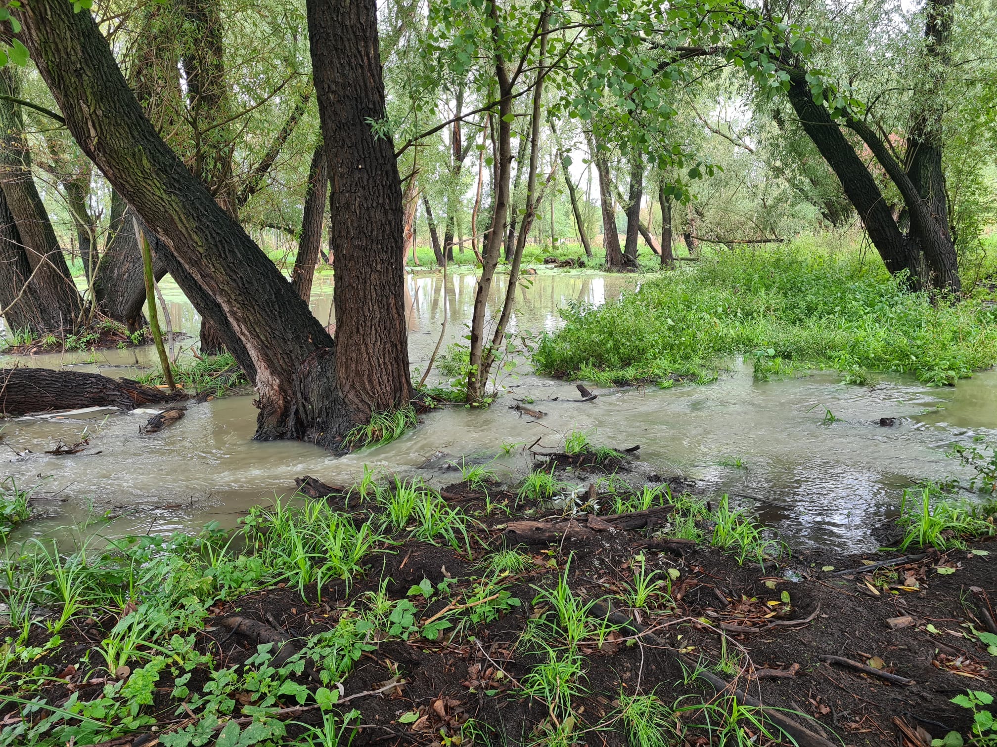 Dnes jsme po deštivých dnech zkontrolovali situaci v Ptačím parku Kosteliska. Voda z řeky Kyjovky se objevila i v místech, kam se na jaře nedostala a místy byla i dost hluboká.