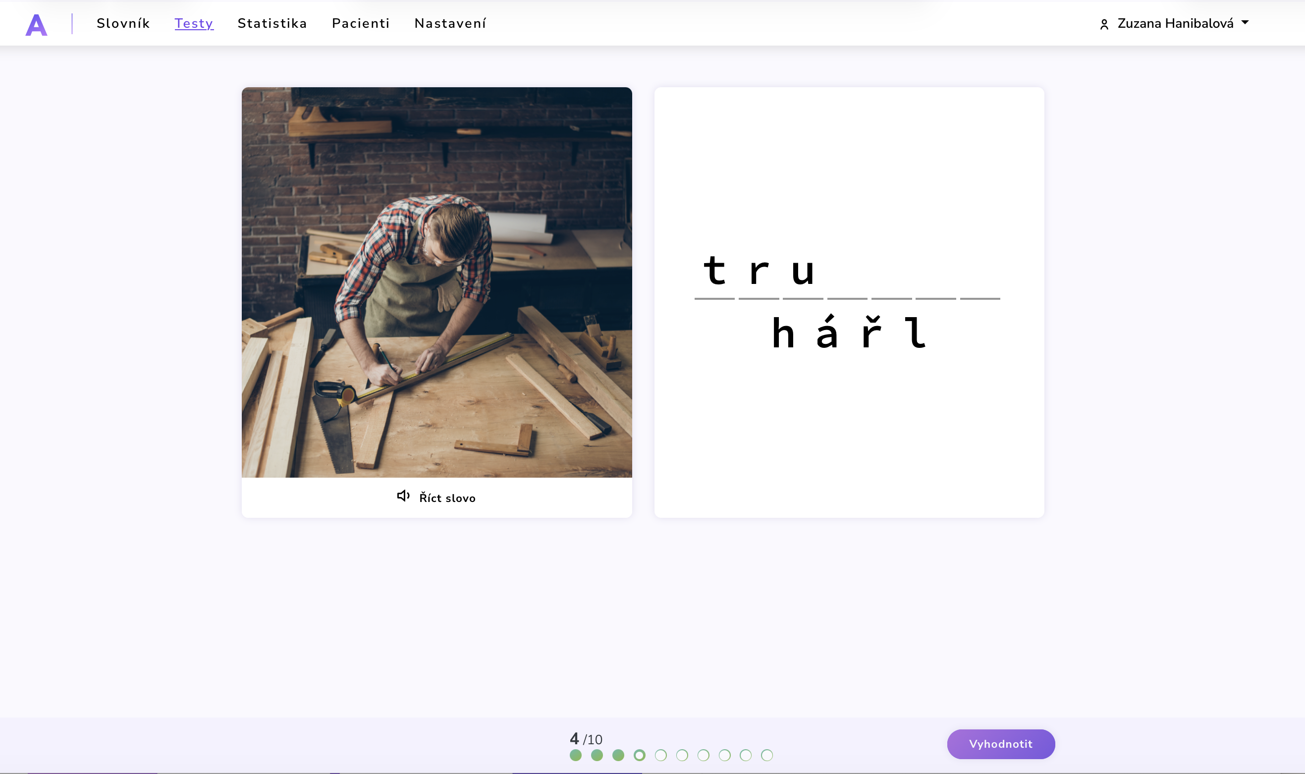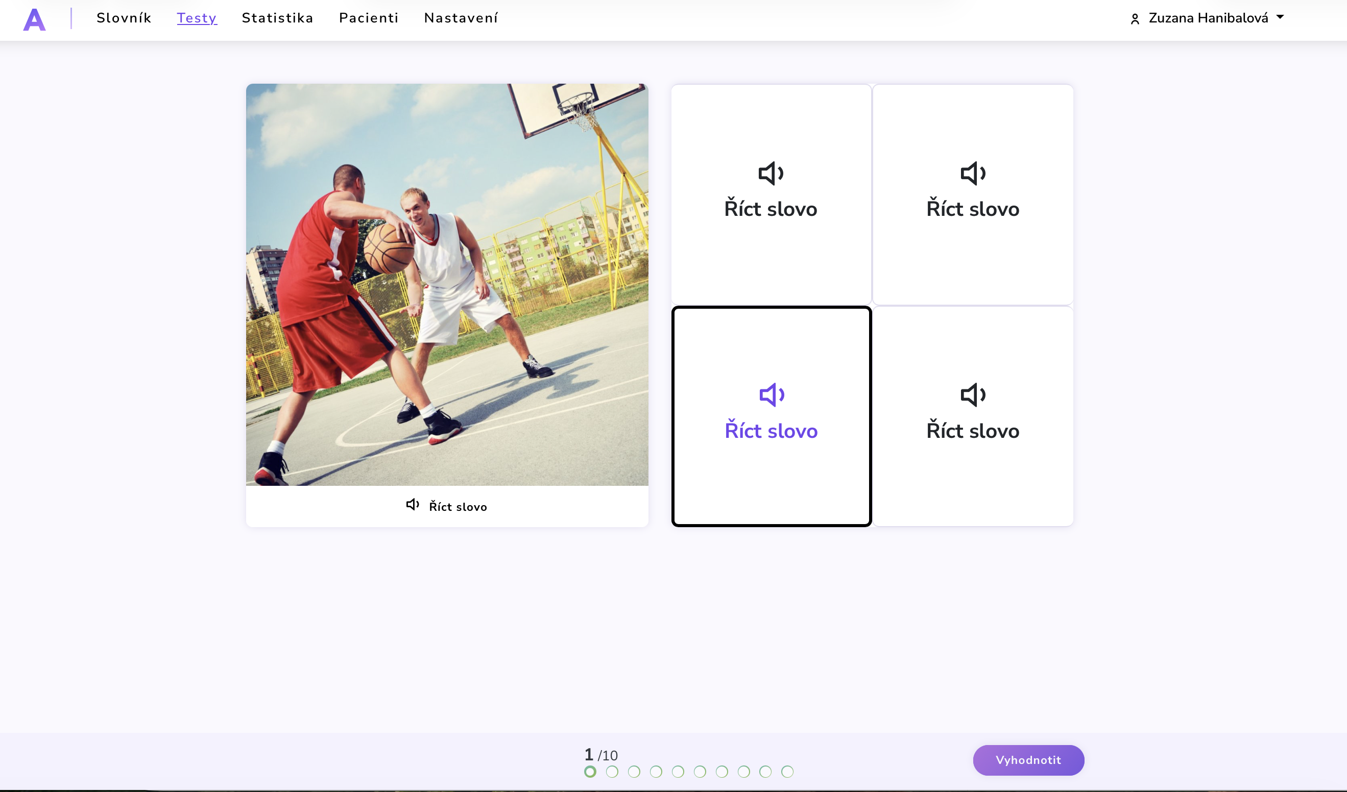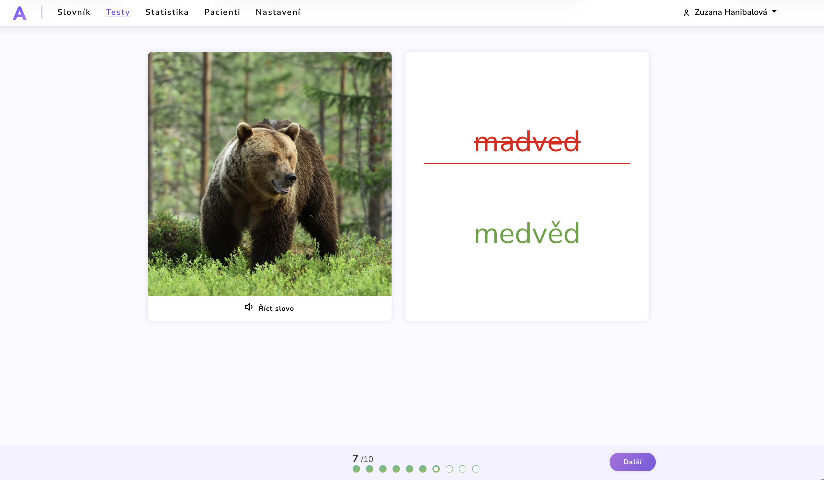Proto jsme vyvinuli AfaSlovník, který zjednodušeně funguje jako Duolingo, učí pacienta znovu jeho mateřský jazyk. Umožňuje procvičovat řeč samostatně bez asistence logopeda, z pohodlí domova, a navíc zábavnou formou.