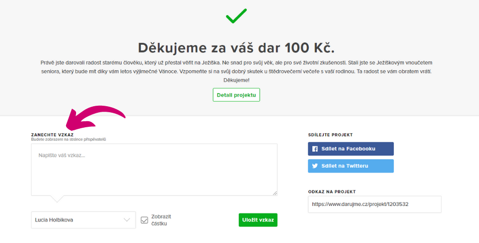 IMPORTANT! After your payment is processed, your browser will load a Thank You page, where you need to click on the "Uložit vzkaz" ("Insert message") button and enter your team’s name as a message (you can also add words of encouragement for your team as well if you want J). Only this way will we know who already paid, so please don’t miss it.