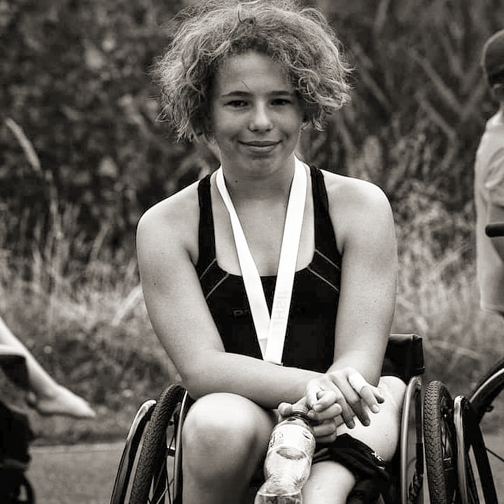 Ahoj. Jmenuji se Alex. Ráda se směju a sportuju. Mám vrozenou vadu pohybového aparátu a páteře. Proto mě od narození provází kolečko operací a rehabilitací. Ale i přes všechny limity miluju pohyb. Nerada se vzdávám a snažím se makat co to jde. Mým snem a cílem je reprezentovat Českou republiku na mezinárodních závodech a na paralympiádě. Konkrétně v plavání, na handbiku, a snad i v triatlonu. Spoustu lidí už mě v minulosti na mé cestě podpořilo a o to více mi záleží na tom, abych je nezklamala. V létě intenzivně plavu a jezdím na handbiku. V zimě mimo plavání moc možností nemám. S dopomocí jsem zkoušela lyžovat na monoski a obrovsky mě to bavilo. Ale bohužel, abych skutečně mohla lyžovat, musela bych mít monoski speciálně upravenou pro svou neohebnou nohu. Navíc, kdybych měla monoski, mohla bych jet na lyžák a jiné akce se svými spolužáky. To bych si moc přála, protože jinde a jinak s nimi skoro sportovat nemůžu.