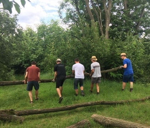 V roce 2014 jsme místo vyčistili od odpadků a od té doby zde ve spolupráci se základními a středními školami sázíme ovocné stromky a keře. Vyhloubili jsme také malé jezírko a vybudovali ohniště i přírodní prolézačku pro děti. Pozemek byl dříve zarostlý náletovými dřevinami, svá doupata zde měli bezdomovci a narkomani - to vše v těsném sousedství základní školy. Nyní sem chodí trávit čas pejskaři, školní třídy v rámci výuky, mladé rodiny vysazují svoji třešeň při narození potomka a velmi oblíbené je od jara do podzimu i víkendové opékání špekáčků, kdy se sejdou celé skupinky sousedů.