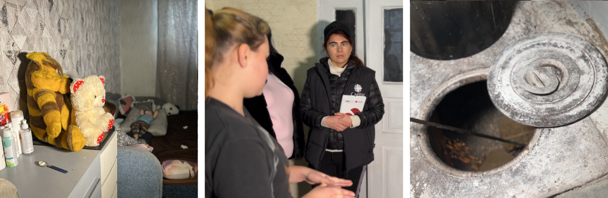 Válka donutila dvouletou Evelínu a její rodiče, Yevhena a Marjanu, uprchnout z jejich rodného města Marhanec v Dněpropetrovské oblasti. Rodina se usadila v domě na venkově, kde jsou jediným zdrojem tepla stará kamna na dřevo. Kvůli nezaměstnanosti a rostoucím cenám tuhých paliv je vytápění domu po celou zimu nesmírně finančně náročné. Rodina je tam velmi vděčná za pomoc, kterou jí poskytla Charita Česká republika a Humanitární fond pro Ukrajinu.