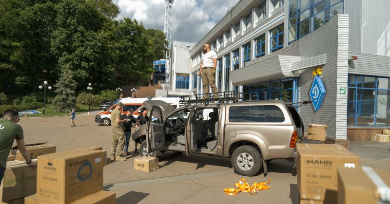 Oficiální předání většiny materiálu proběhlo v Kyjevě na stadionu fotbalového Dynama Kyjev za účasti českého velvyslance p. Radka Pecha. „Jsme rádi, že podpora od Česka není jen slovní, ale je i činností vlády nebo nevládních organizací. Sláva Ukrajině,“ řekl.