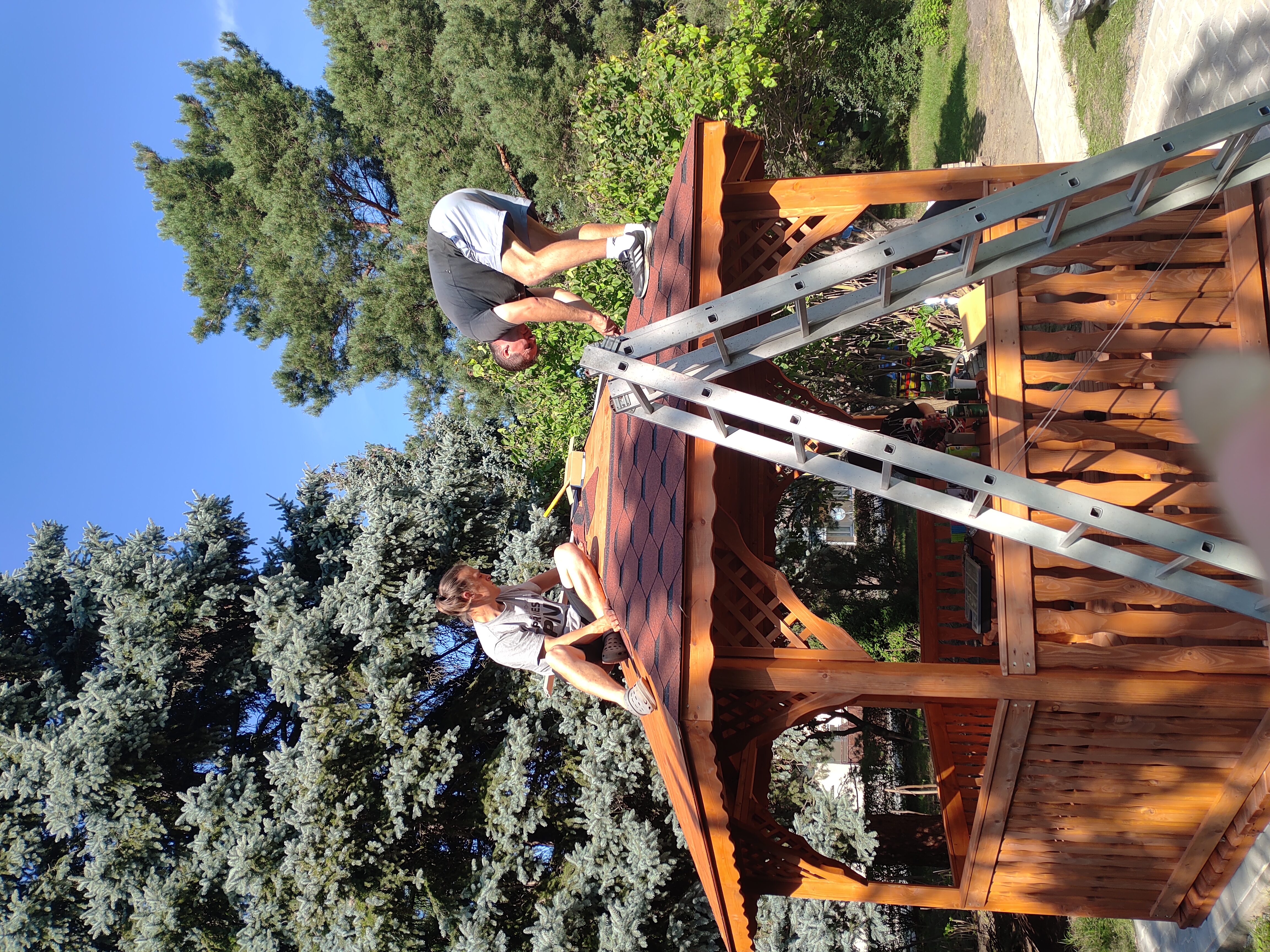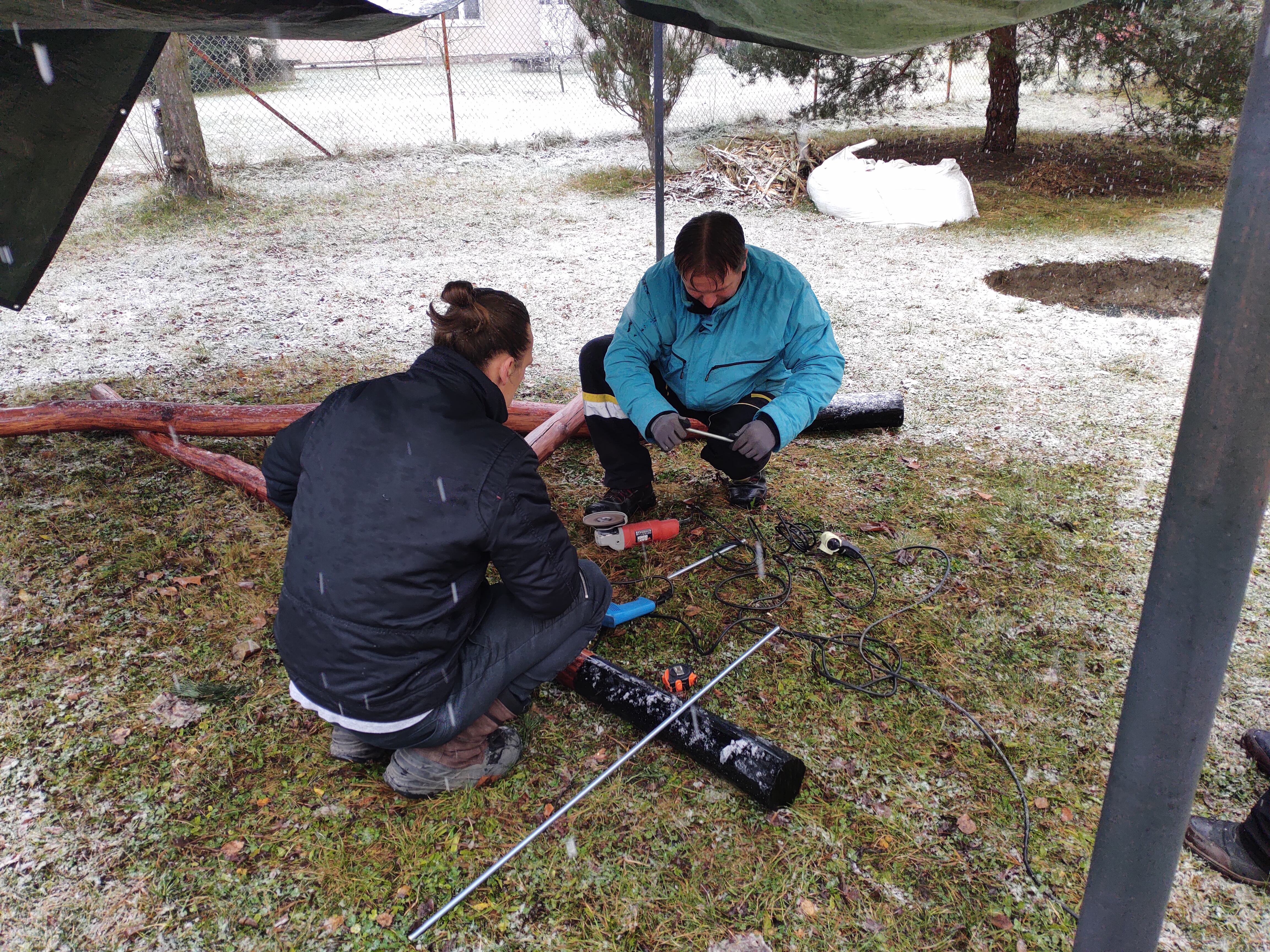 Následovaly tři měsíce bezesných nocí… Hledání, telefonování, mailové komunikace, zda najdeme někoho, kdo bude ochotný základ pro altán, který si doděláme, za přijatelnou cenu a co nejdříve vyrobit. Ve chvíli, kdy jsme začali uvažovat, že grant vrátíme, podařilo se sehnat altán za 45 tis., o něco větší, než byl plánovaný. Ale hlavně jsme našli dobrou duši - sponzora, který byl ochoten zaplatit altán s tím, že až budeme mít hotové vyúčtování, částkou, která zbyde, mu přispějeme za nákup altánu.