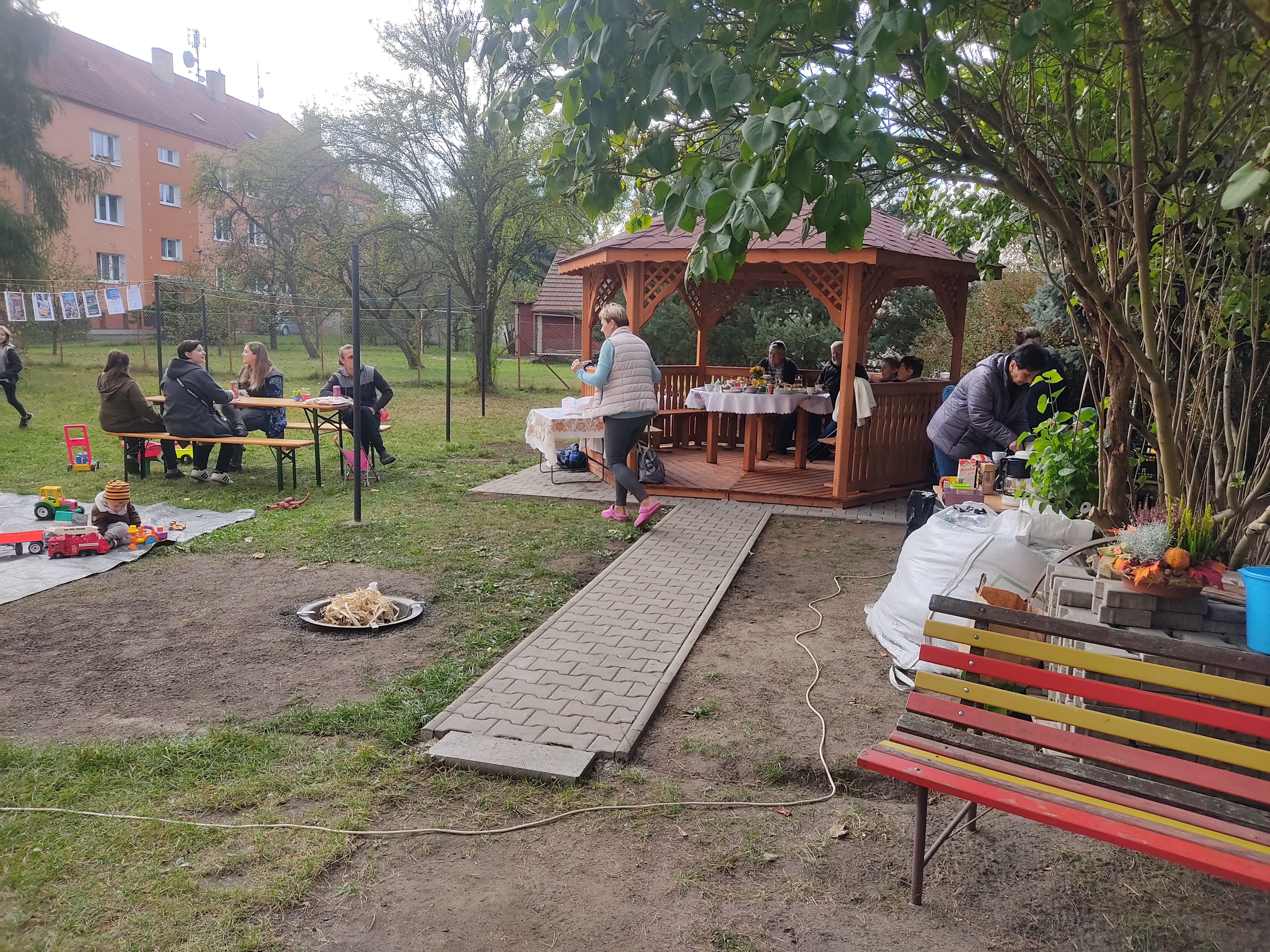 S nově příchozími sousedy přišly nápady, jak prostor oživit zpříjemnit a zase se začít setkávat. Jen jsme hledali zdroje. Náhoda tomu chtěla a naskytla se možnost grantu od Nadace Via. Vše proběhlo strašně rychle. Během měsíce jsme zpracovali a podali projekt, který byl podpořen a finance dorazily na účet. Po první euforii přišlo rychle vystřízlivění… Během měsíce vzrostly ceny dřeva, stavebních materiálů i o více jak 100 %. Základní stavebnice altánku, se kterou jsme počítali, byla nedostupná.
