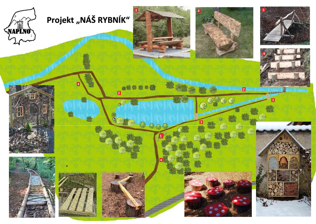 Zanedbané okolí rybníka jsme si již začali postupně společnými silami upravovat, vyrobili jsme první aktivity pro děti, které jsme umístili a děti je rády využívají. Postupně provedeme terénní úpravy a odstraníme rozbitou lávku, která je velmi nebezpečná. Vyrobíme si lávku novou, dřevěnou a nainstalujeme ji.