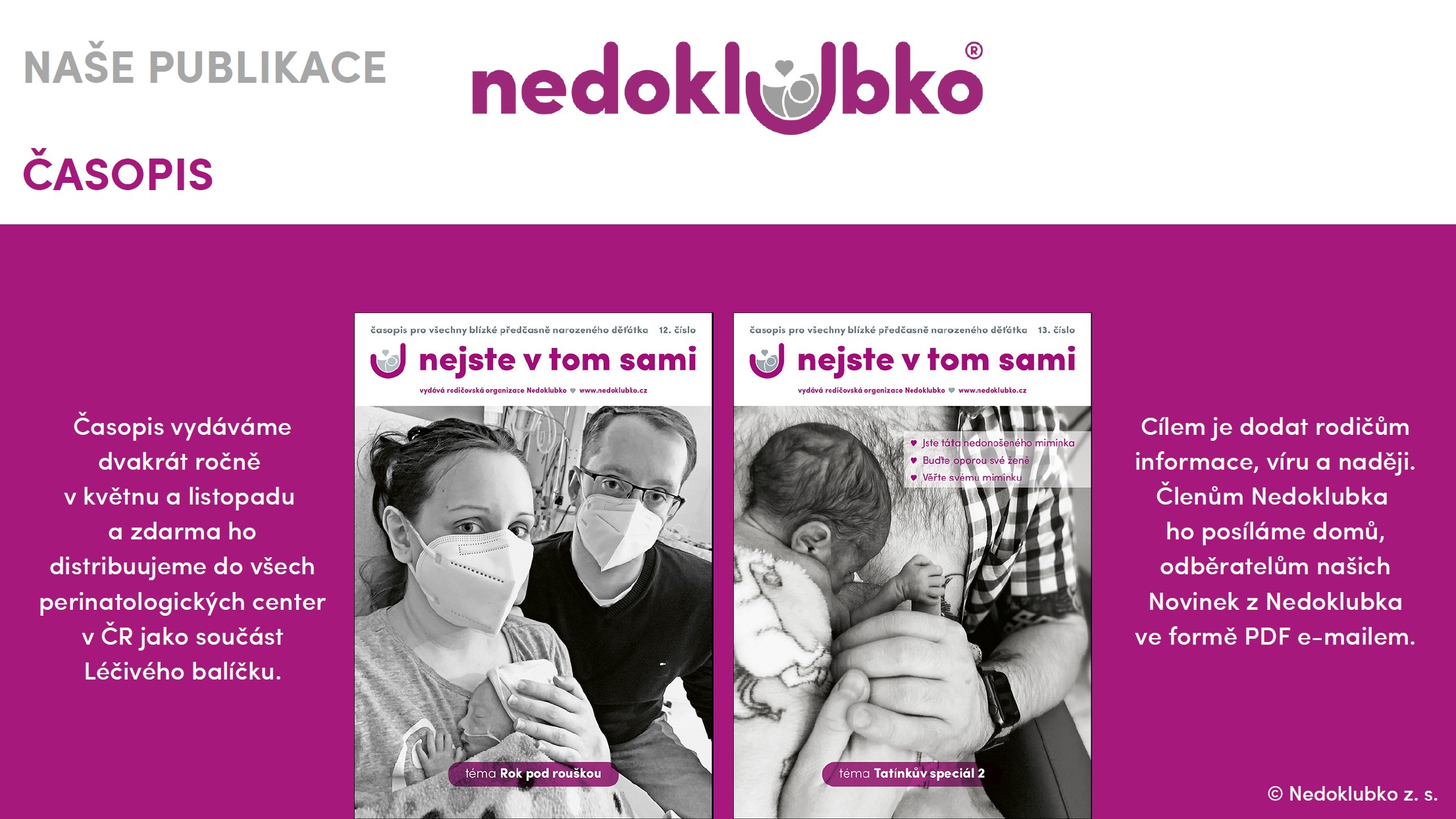 Nedoklubko letos v červnu oslaví 20 let od svého vzniku. Za tu dobu ušlo dlouhou cestu a z malého klubu rodičů se stalo velkou organizací, která pomáhá rodinám předčasně narozených dětí v celé České republice.