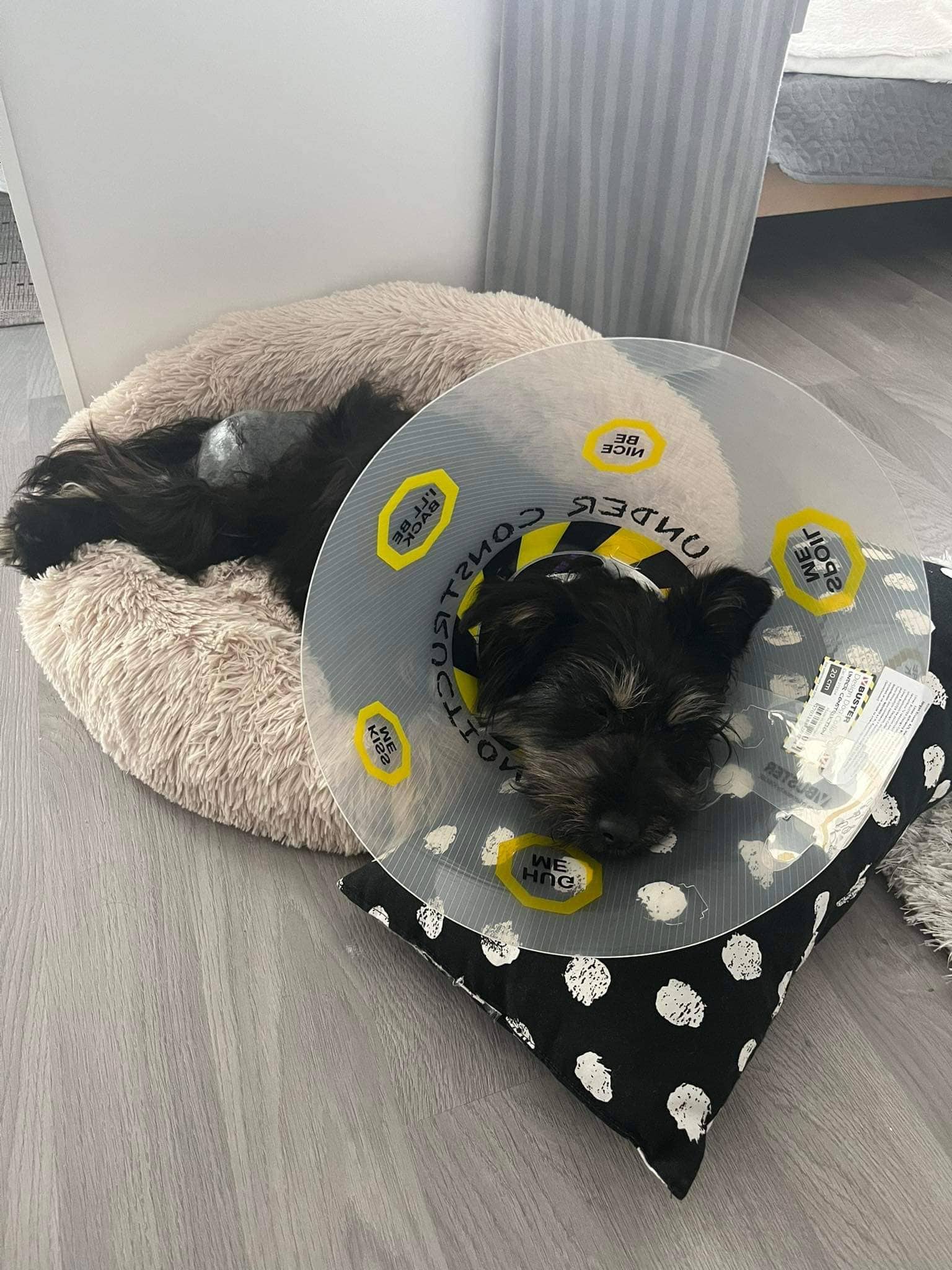 Gina went to foster care so that she could recover in a quiet place. The surgery, femoral head resection, has been successfully completed and Gina must rest for ten days and it will take another month before she will have full use of her leg. The cost of this operation was 9 400 CZK. If you could help us to patch this hole in our budget, we would be very grateful. Especially Gina :) She can't wait to run and play like other dogs.