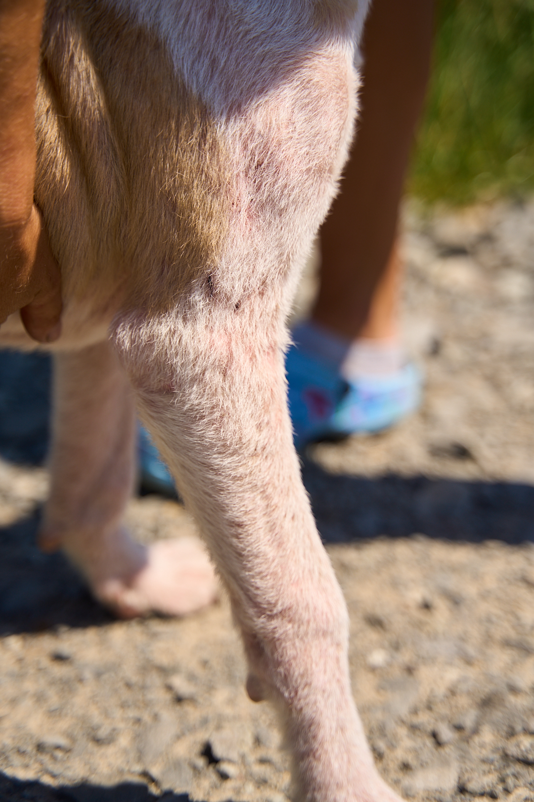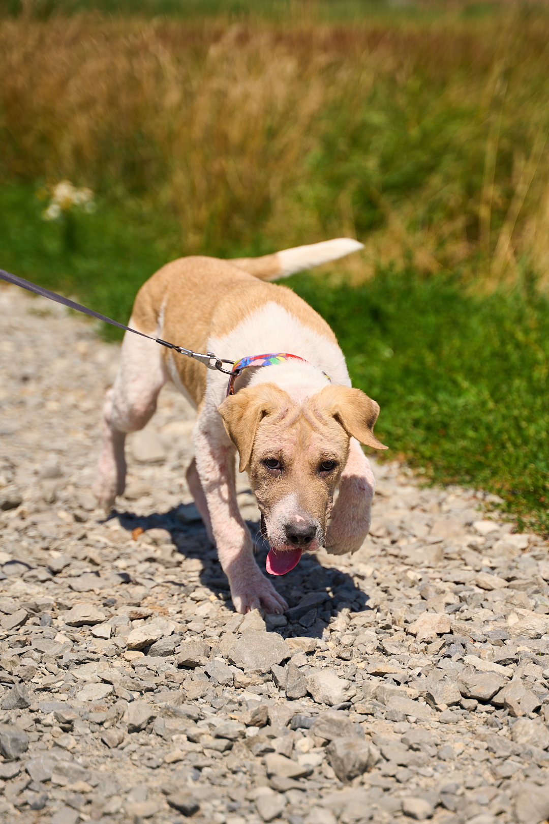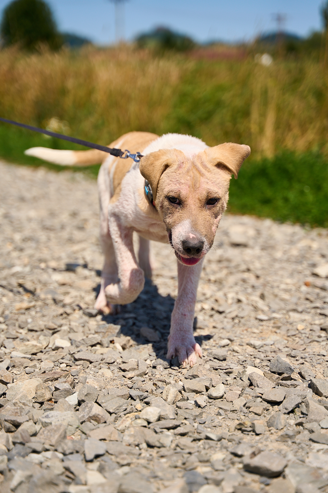 Naštěstí se tohohle "drobka" zřekli a my tak můžeme dohánět, co bylo zanedbané. V první řadě musíme udělat vyšetření a zjistit příčinu jeho hrozného stavu s kůží. Jestli se jedná o nemoc nebo třeba o potravinovou alergii. Musíme nasadit doplňky a vitamíny, aby se jeho pohybový aparát vyvíjel správným směrem, rozhodně to totiž nebude žádný drobek. Již teď váží 17 kg, a to je teprve čtyřměsíční štěně. Počítáme s tím, že v budoucnu bude opravdu veliký, vidíme v něm nějaké bull plemeno a možná i trochu SAO. O to více je teď důležité udělat maximum, aby byl v dospělosti zdravý a vyrovnaný pes.