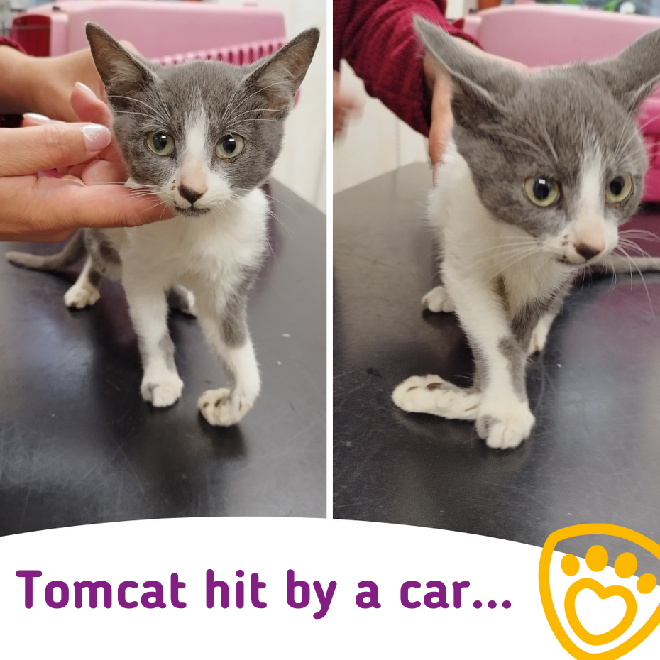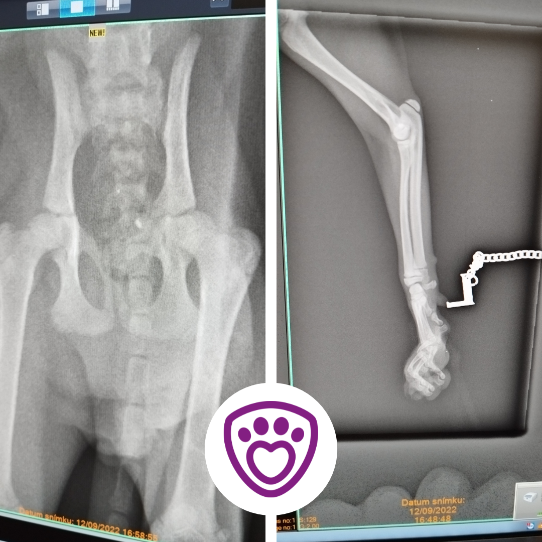At first, we thought only his front leg was not allright. He has a complicated joint fracture there. Unfortunately, that wasn't all, the vet found out his pelvis is fractured as well. 😨