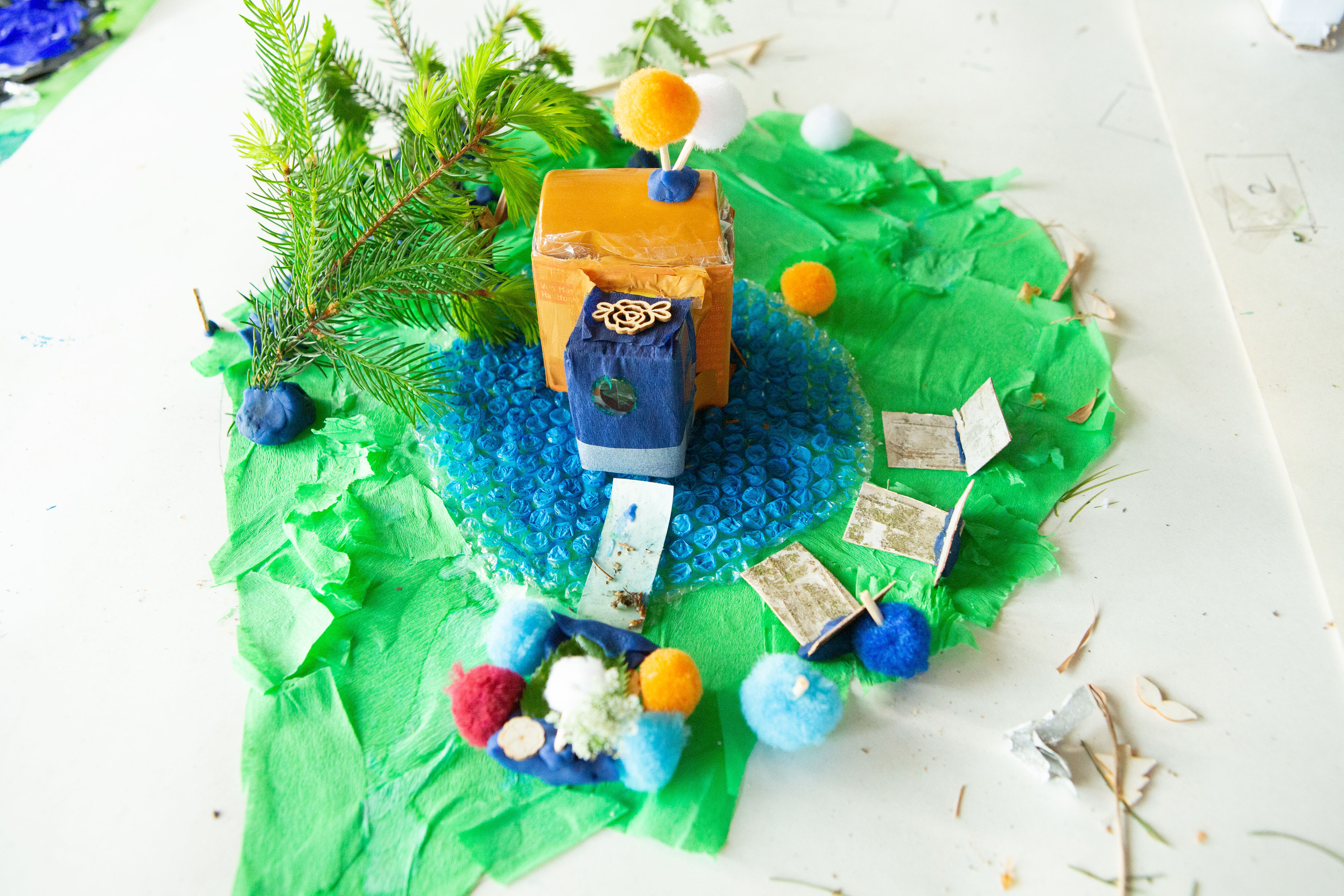 We then held an architectural workshop for the children, which allowed them to hold their own community planning process. Next the kids worked in groups to showcase the favorite ideas. The sauna found its supporters among them as well.