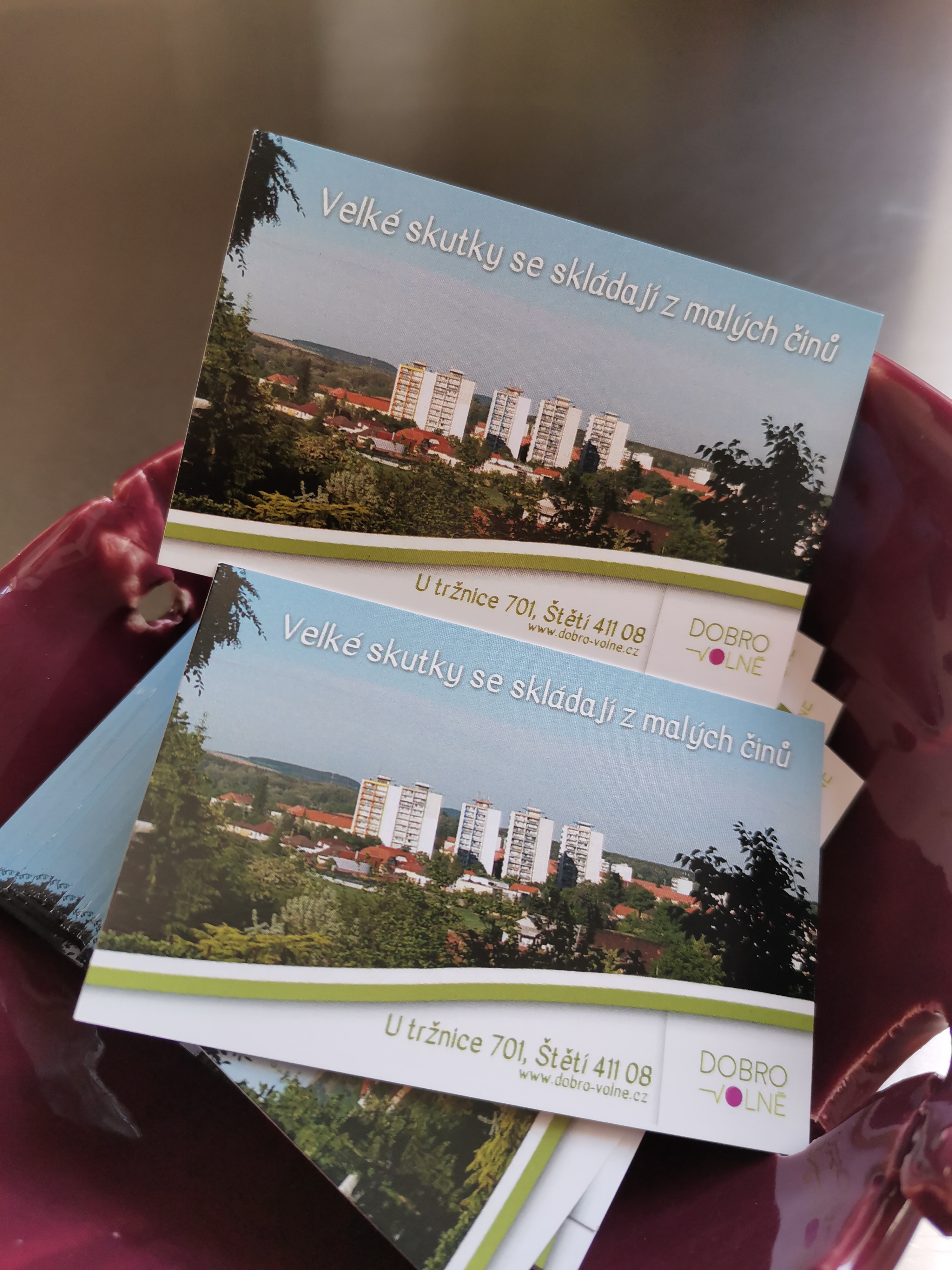 Daruj dobro a dobro se Ti vrátí! Tak můžeme popsat jednu z mnoha spoluprací s našimi lidmi v komunitě. Paní v důchodovém věku se ráda učí na počítači a ve svém volném čase si sama zpracovává knihy a kalendáře včetně grafiky (viz foto). Už na jaře nám pro naši prezentaci vyrobila vizitky a pro sdílení zajímavých míst vytvořila též jedinečné knihy. Nyní nám na Vánoce věnovala 40 kalendářů v hodnotě 10 000 Kč, které si máme prodat a finanční výtěžek použít pro další aktivity komunitního centra Dobromysl.