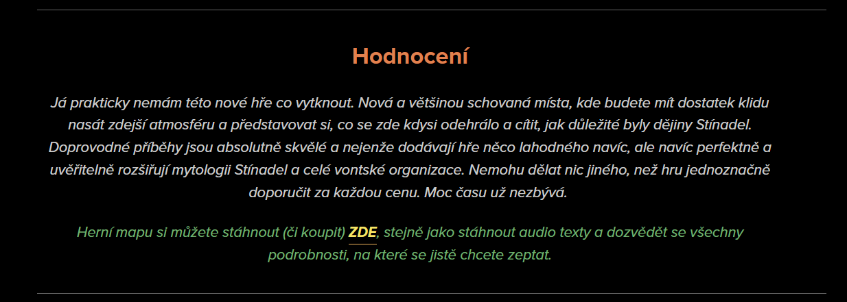 Děkujeme za báječně zpracovanou hru. Skvělé strávené prázdninové odpoledne. Dcera se něco dozvěděla o Foglarovi a Stinadlech a já se vrátila do svého dětství a děje milovaných knih.