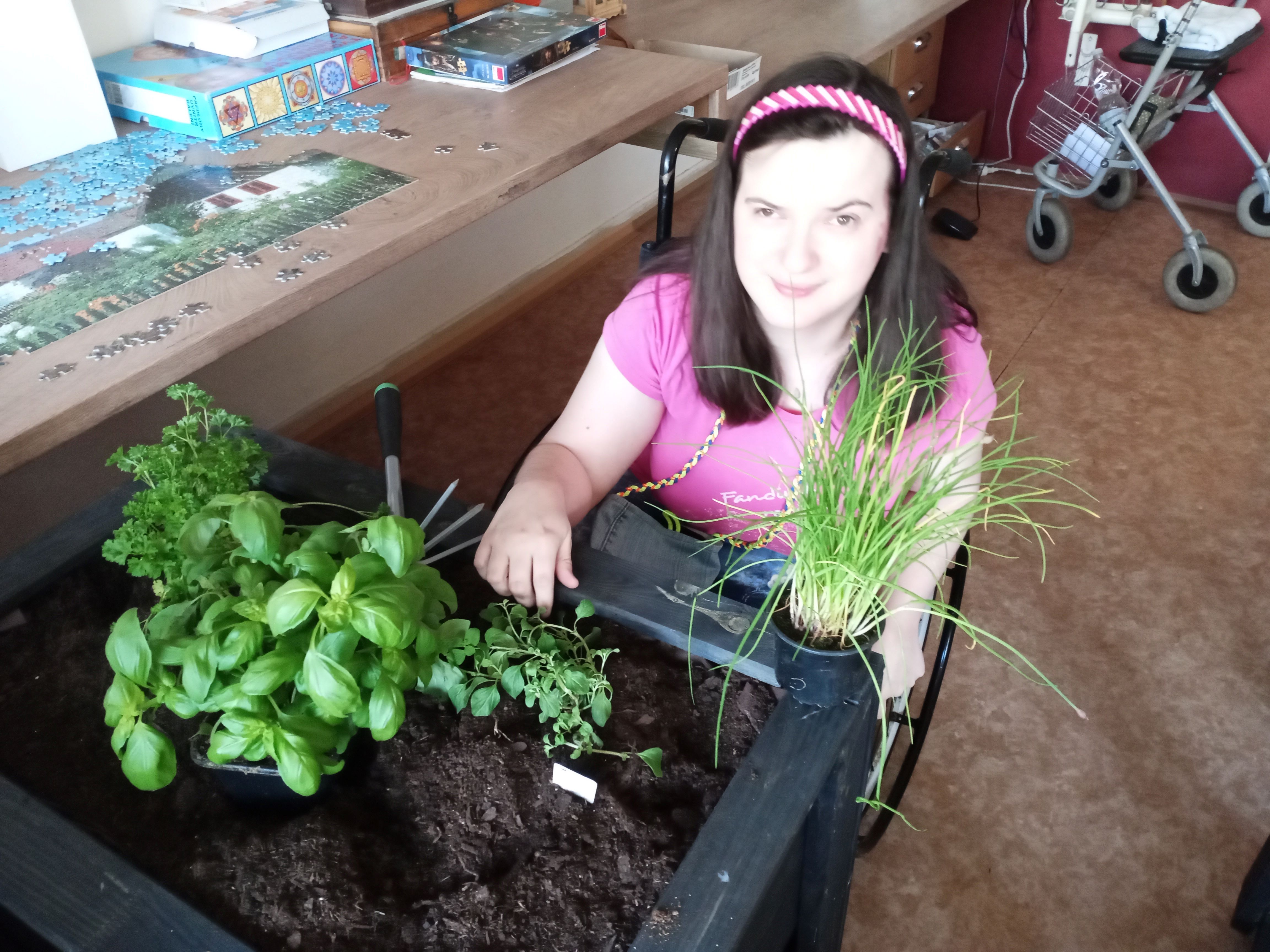 Vyvýšené záhony přibližují přírodu k lidem a umožňují pohodlný přístup k záhonu ze všech stran. Kromě bylinek, bychom chtěli s klienty pěstovat zeleninu, o kterou se budou moci starat a v rámci volnočasových aktivit mohou tuto zeleninu zpracovávat a pochutnat si na zeleninových pokrmech z vlastní zahrádky. Proto bychom velmi uvítali další truhlíky do naší mobilní zahrady.