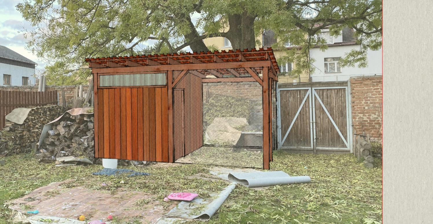 Jak bude výběh vypadat? Celý výběh bude oplocený a krytý, aby se mohl využívat celoročně. Rozdělíme ho na dvě části. První část bude sloužit jako výběh, kde budou škrabadla a možnost pro řádění koček a koťat. Druhá část bude zateplená bouda s dveřmi. Uvnitř budou pelíšky a individuální klece. Bouda bude mít několik využití jako například karanténa při příjmu nových koček nebo další zázemí, kde budou moci kočky přečkat zimu v teple a pohodlí. Na konci naleznete grafické zpracování výběhu pro lepší představu.
