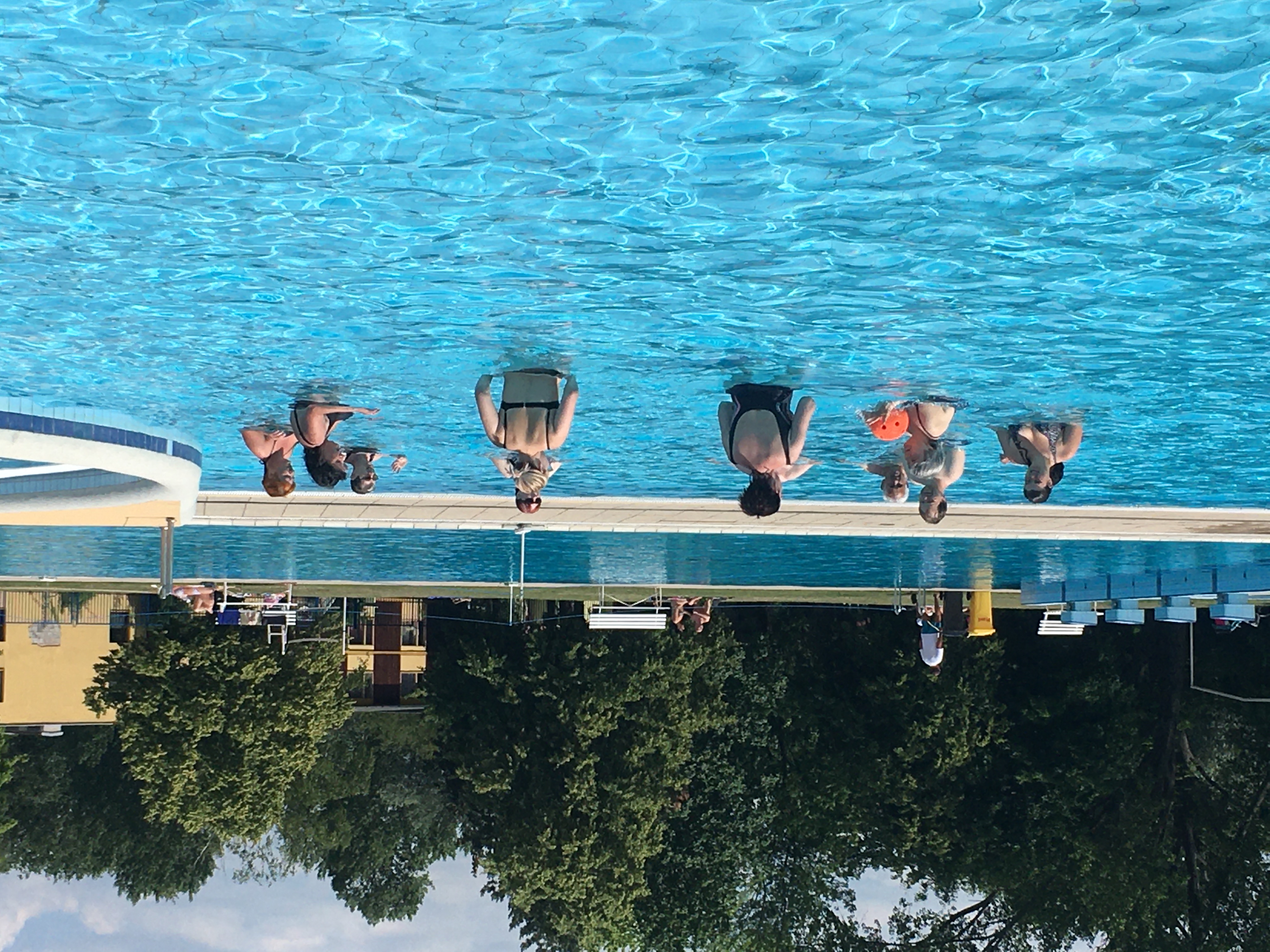 Nevěříte, že i nevidomí mají rádi vodu? Věřte! Užívají si možnost nechat se unášet na hladině, plavat a prostě se radovat z vody. Hojně toho využívají v bazénech viz jako na obrázku níže na koupaliště v Mělníce v červnu 2023.