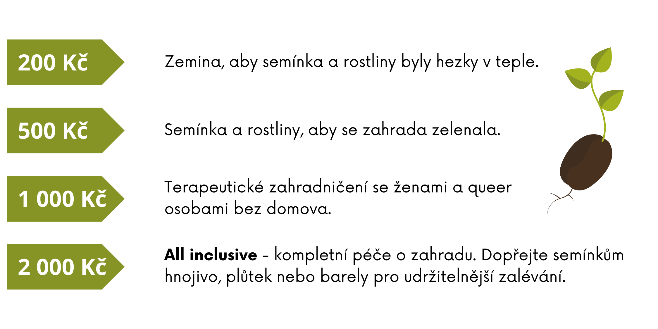 Naše rozpočty bohužel nepočítají s aktivitami jako jsou terapeutické dny na zahradě, nákup semínek, zalévání, plení a vše, co ke správné zahradě patří. 🌱
