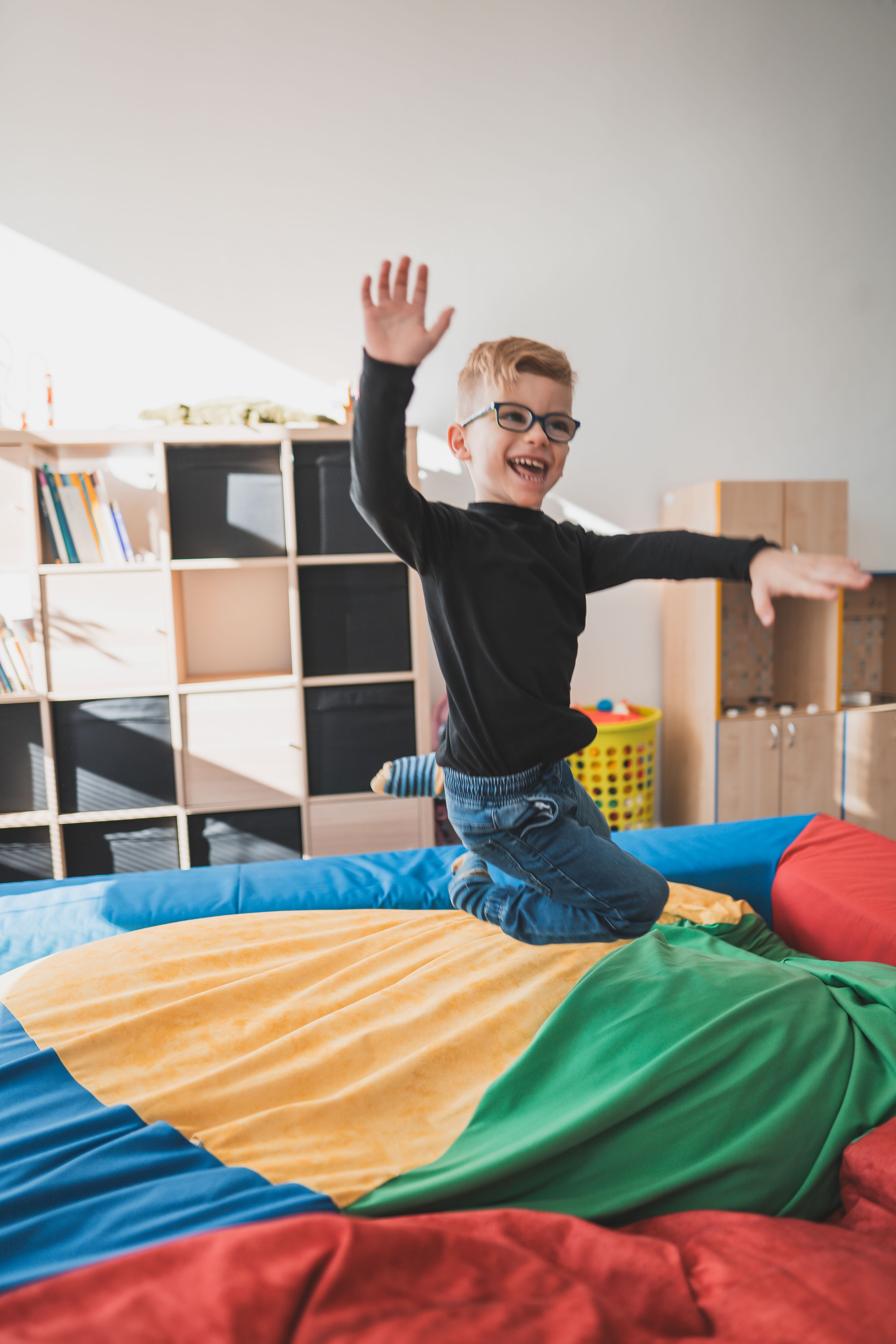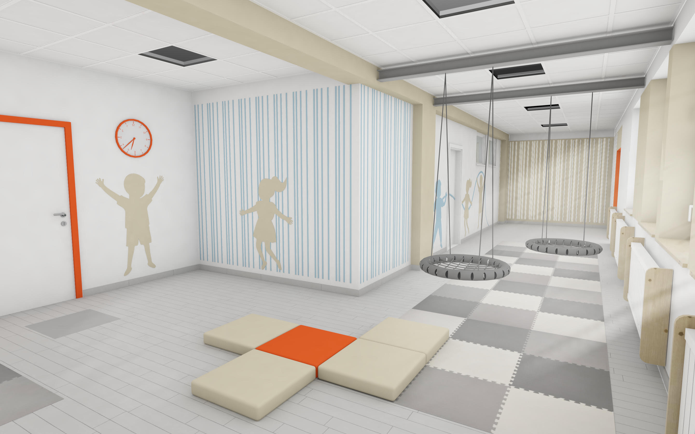 V naší tělocvičně po rekonstrukci najdete různé povrchy a struktury, houpačky, žebřiny a lezeckou stěnu, balanční desky, tunely a válce a spoustu dalšího. S podporou našich úžasných sociálních pracovnic a s pomocí všech těchto prvků pomůžeme dětem vnímat polohu jejich těla, doteky, umožníme jim se zklidnit, ale i vyřádit nebo zaktivovat. V prostorách Snoezelenu budou na děti čekat světelné, zvukové a vibrační prvky, které podpoří prožívání dalšími smysly.