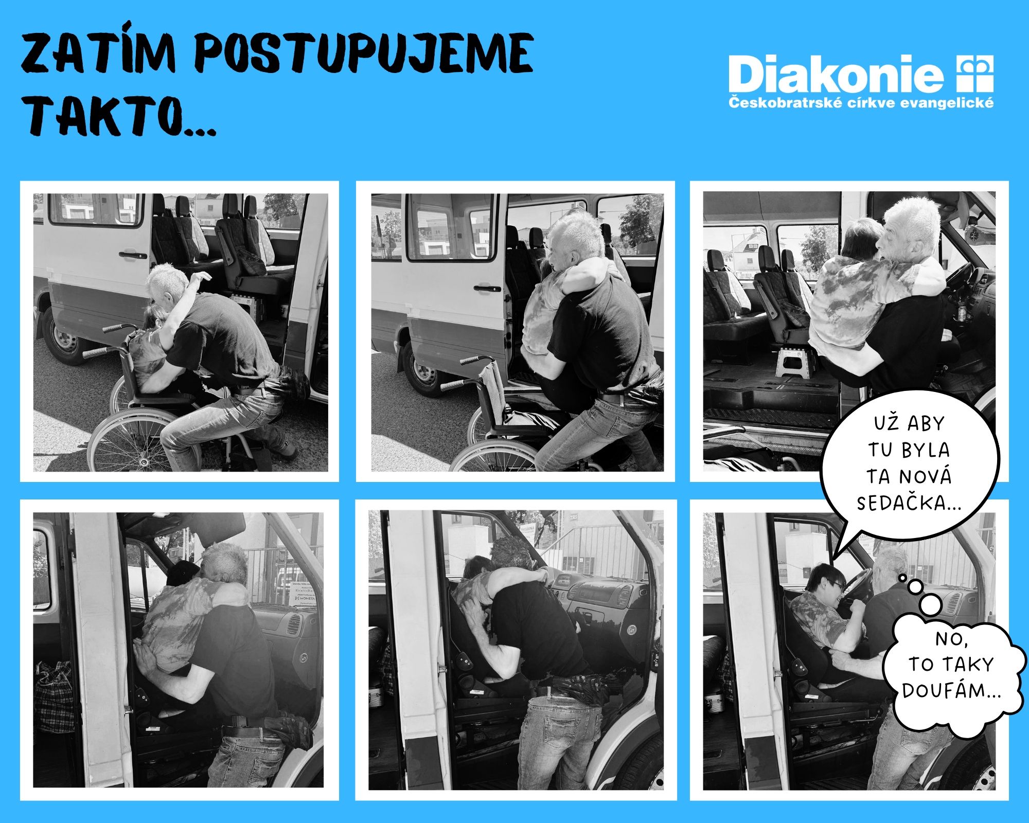 Ne pro všechny je to tak snadné. Problém s tím mají naši klienti na vozíku i kolegové, kteří jim v cestování autem pomáhají, zejména při nastupování a vystupování. V Diakonii máme jen jednoho fyzicky zdatného pracovníka, pro ostatní je to nereálné.