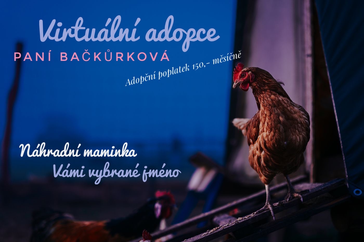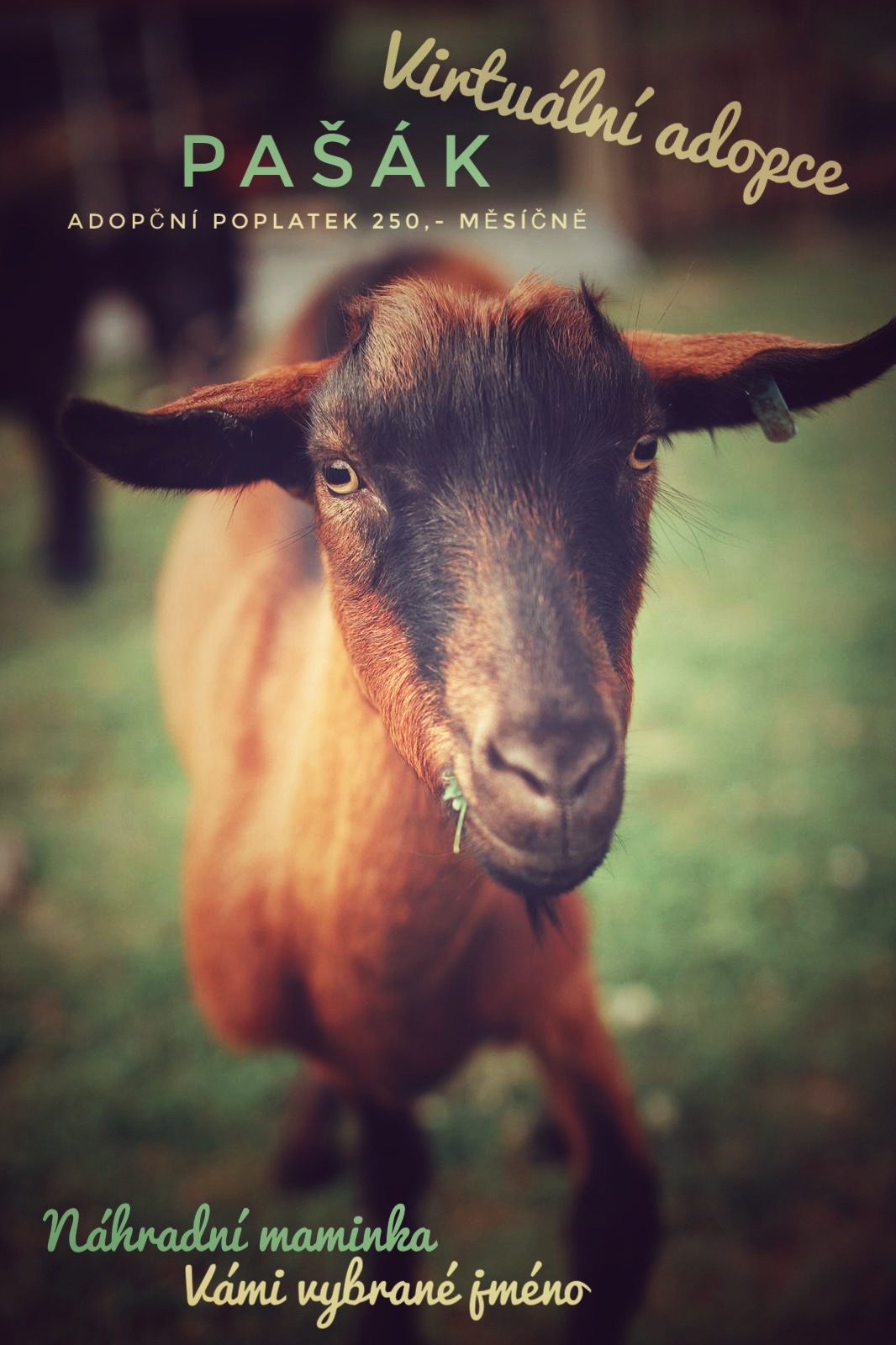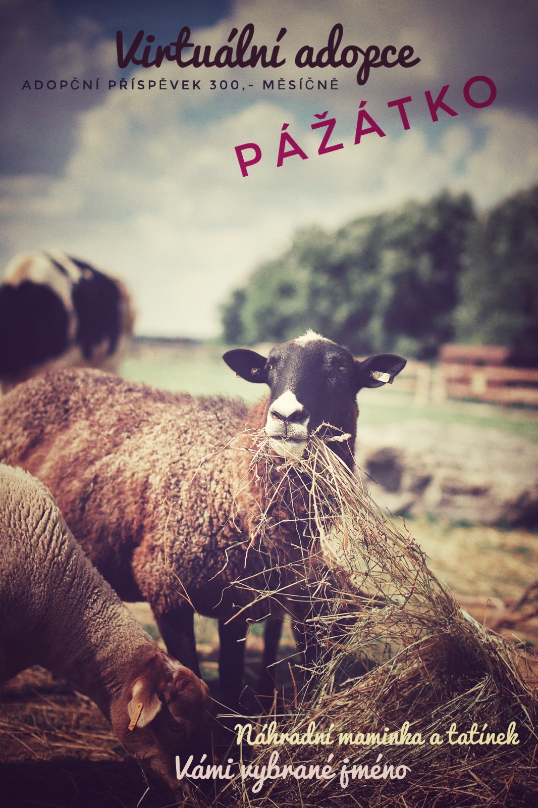 VIRTUÁLNÍ ADOPCE nebo-li adopce “na dálku” znamená stát se “náhradním rodičem” nebo “kmotrem” Vámi vybraného zvířátka, kterému můžete přispívat každý měsíc na krmivo, veterinu, či mu můžete zaslat nějaký pamlsek nebo hračku. A samozřejmě ho přijet po domluvě navštívit a podrbat. ❤ Nebo mu přijet zahrát či zaspívat, milují totiž hudbu, nejvíce asi slepičky.
