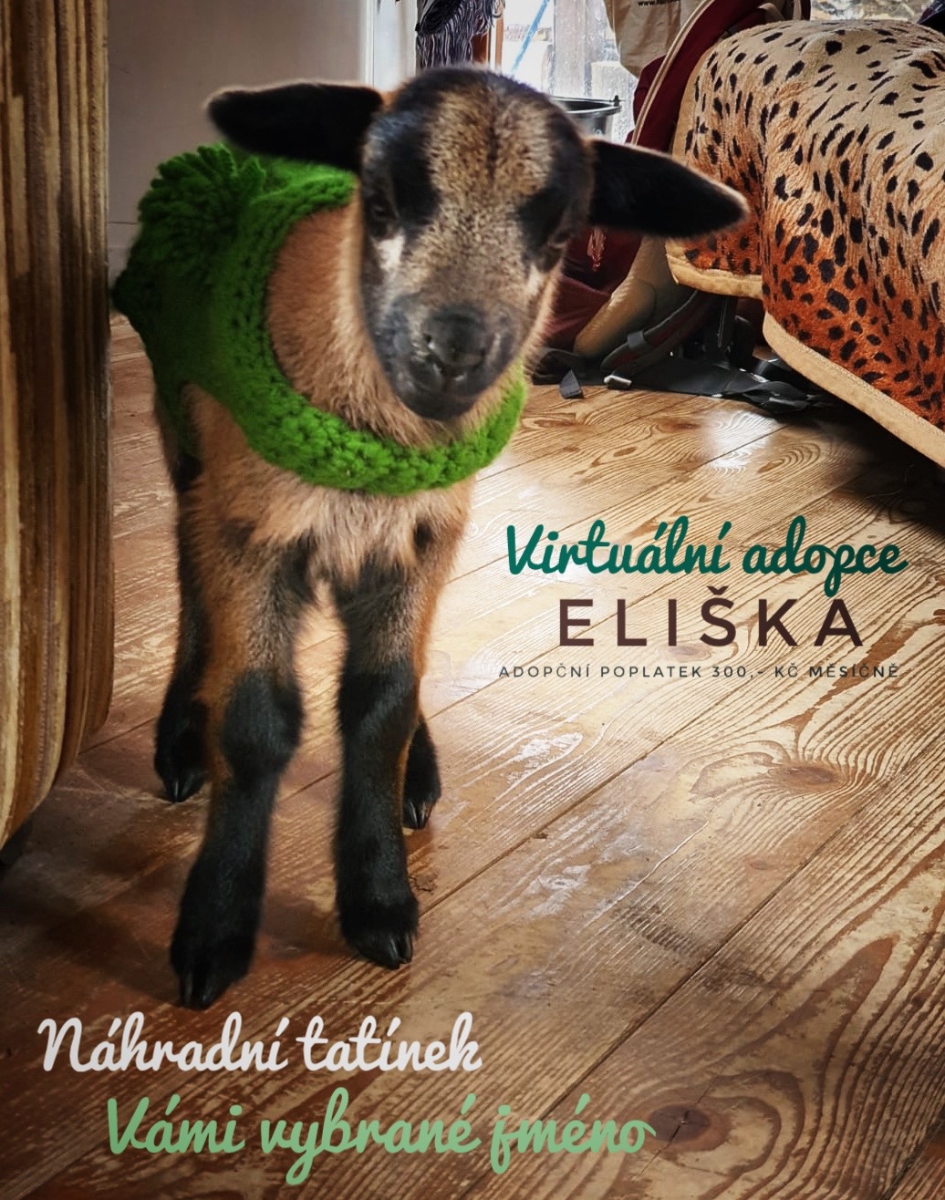 Tohle miminko nepřijala maminka a umřela by, protože v chovech nemají čas se o takovýhle prcky starat a několikrát denně, včetně noci, je 3 měsíce krmit. Byli jsme požádáni, zda bychom se jí neujali a tak putovala k nám. Bylo to veselý rozmarný mimčo, který nám skákalo v jurtě nejen po sedačkách a křeslech, ale i hlavně po hlavě. Malvínka jí upletla krásnej zelenej kabátek a v něm se tady proháněla a poznávala všechny faremní zvířátka a se všema byla hned kamarádka. Na začátku byla v jurtě s nemocným a malinkatým beránkem Bertíčkem, pro kterýho byla jeho velká sestřička a hodně mu pomáhala v jeho boji s těžkou nemocí. Bertíček to dal a teď se oba už několik let prohánějí a skotačí s ostatníma zvířátkama ve velkým výběhu.