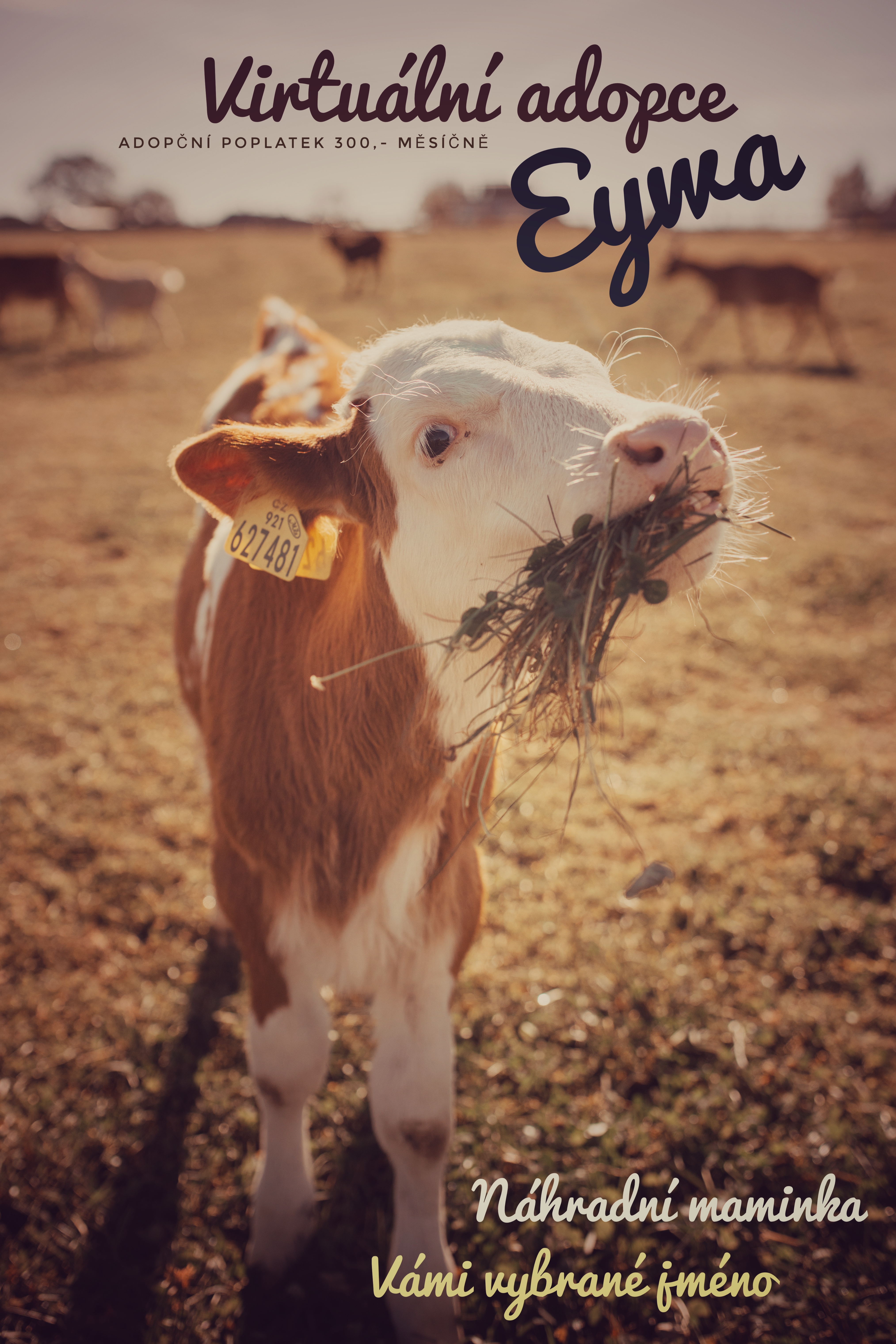 V 5 až 6 letech jde většina mléčných krav na jatka a pak do hamburgerů, protože už nedávají tolik mléka, kolik denně vyžadujeme. Eywa se k nám dostala jako měsíční telátko a museli jsme ji ještě 2 měsíce krmit mlékem. Je to miláček, který se hned zžil s ostatními kravičkami Grace, Jitkou a Oliverem.