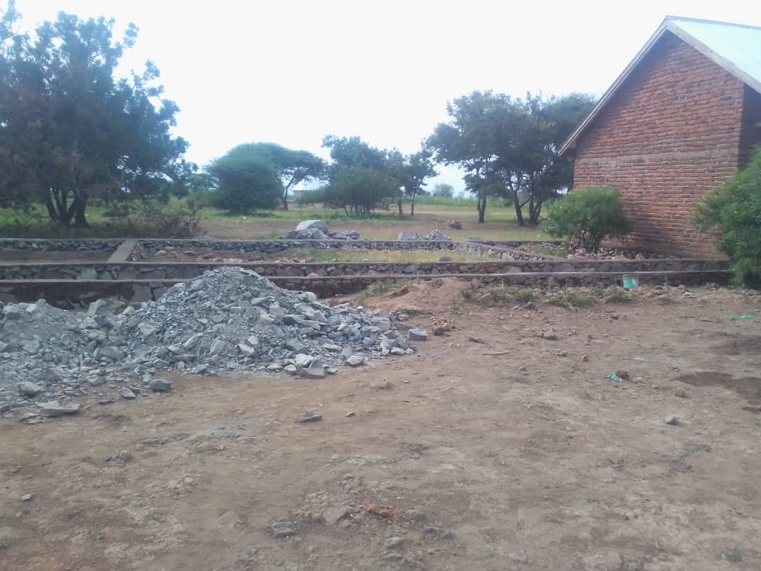 Na základech 2 tříd, které vybudovali letos vesničani postavit hrubou stavbu (cihly, cement, písek, doprava, práce)