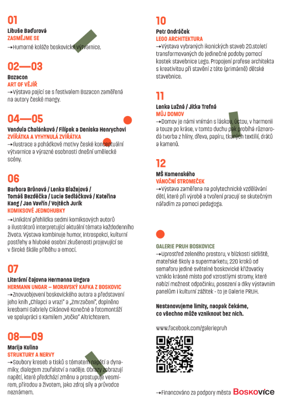 Od slavnostního otevření v září 2024 se galerie Pruh začíná stávat nedílnou součástí kulturního života v Boskovicích. A my chceme, aby tomu tak bylo i nadále!