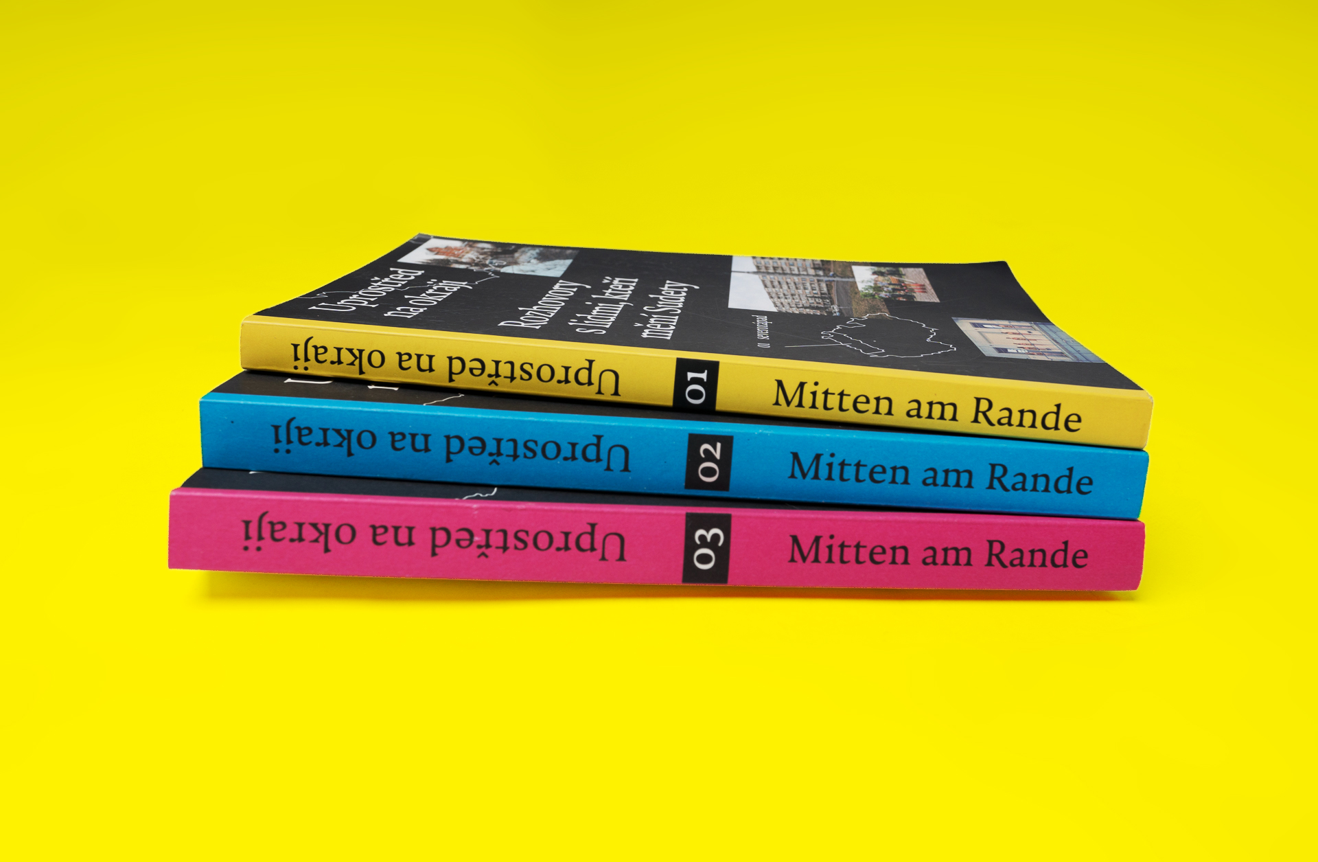 Alle Bücher der Edition sind deutsch-tschechisch. Hier können Sie einen Blick ins ersten Buch werfen: https://issuu.com/antikomplex/docs/uprostred_na_okraji_de_issuu. Die anderen Bücher sind in gedruckter Form erhältlich: https://antikomplex.cz/de/bucher/.