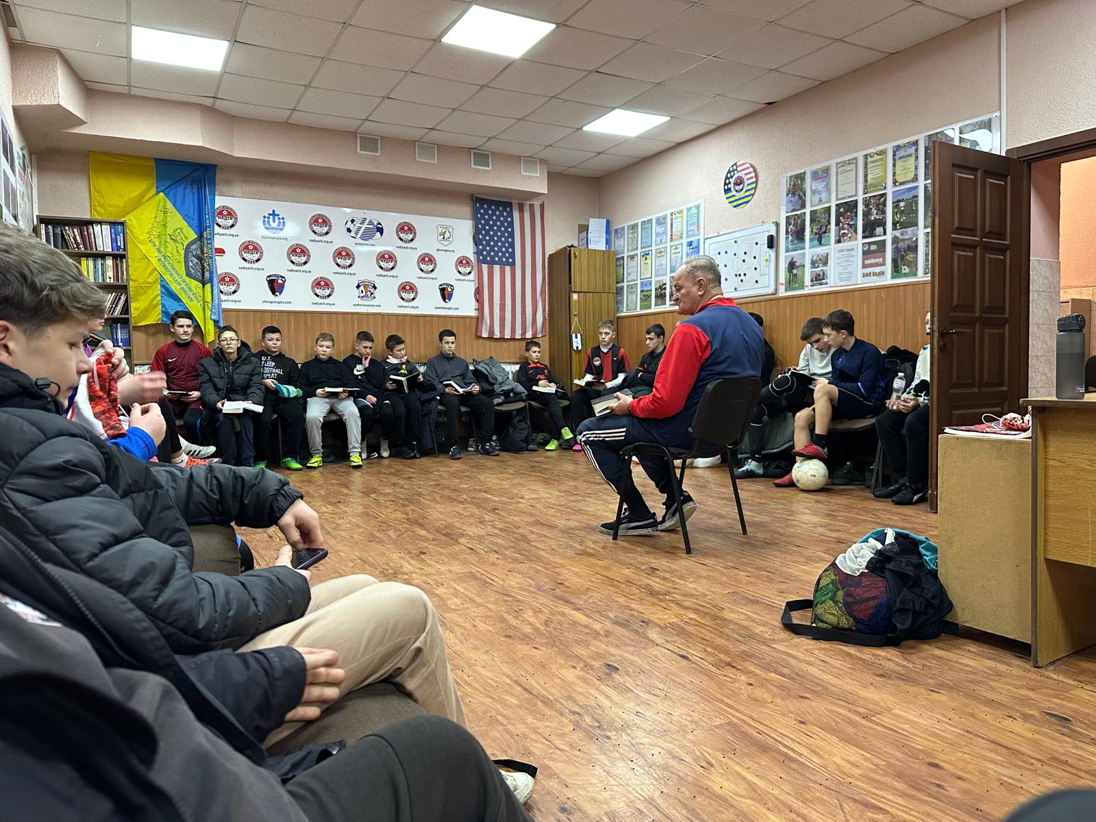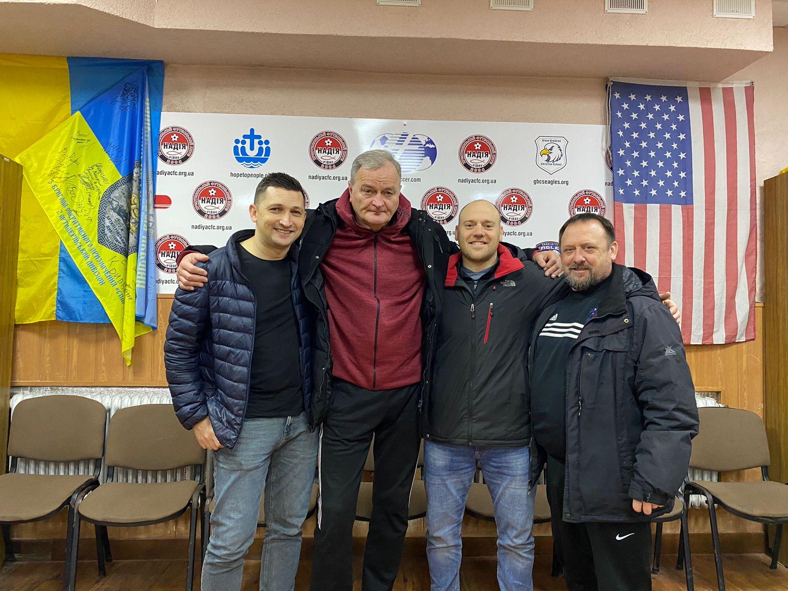 Hlavním tahounem tohoto programu je trenér Ambassadors, Daniel Blessing. Nezůstal pouze u práce s těmi, kteří dorazili do ČR – od začátku měl touhu jet i přímo na Ukrajinu a povzbudit lidi tam. Spojil se proto s vedoucími křesťanského fotbalového klubu Nadiya z města Rivne na západě Ukrajiny. Na jedné z fotek je Daniel (druhý zprava) s místními vedoucími.