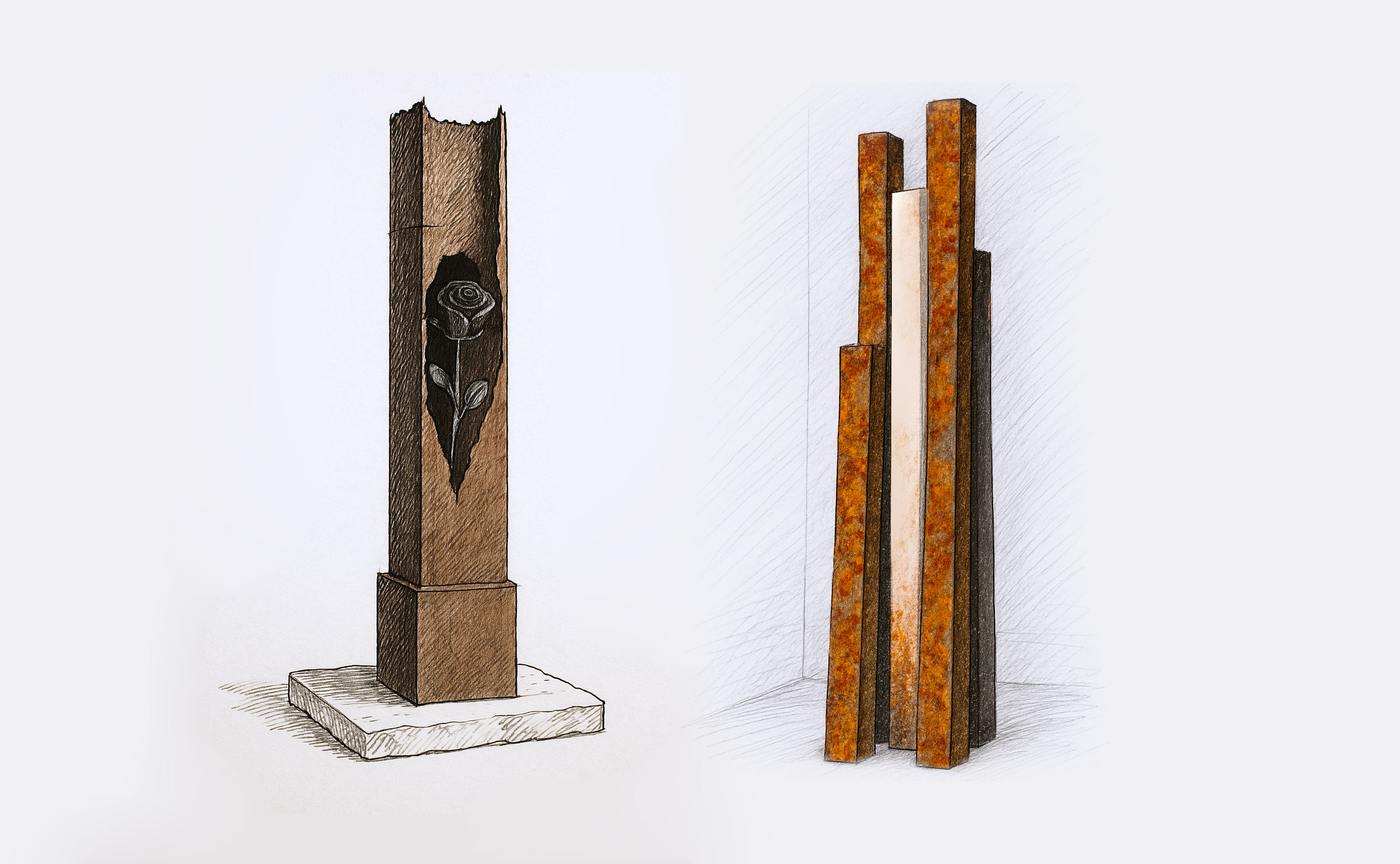 Počáteční návrhy (představy) pomníku: A) Zkorodovaná surová část představuje temnou dobu, zatímco kovová růže uvnitř pomníku symbolizuje nevinnost mladé ženy odsouzené k popravě. Doplněný bude i letopočet 1667.