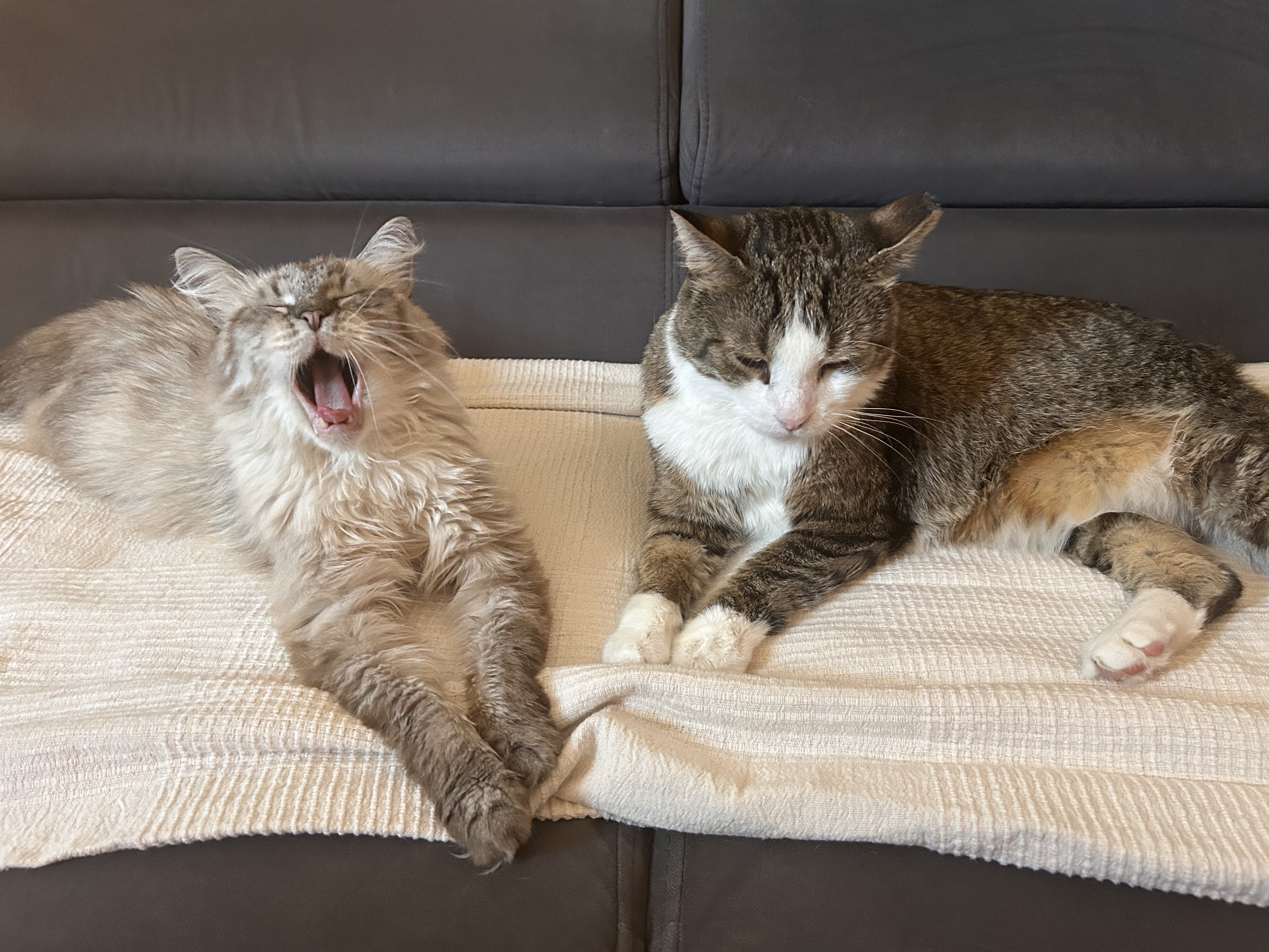 Máme v péči spoustu dlouhodobě nemocných kočiček, které bojují se špatnou imunitou a teplo je základem toho, aby v zimě zbytečně neonemocněli. Na fotce náš FeLV pozitivní kocourek Rudolfek v novém domově se svým kočičím kamarádem se stejnou diagnózou.