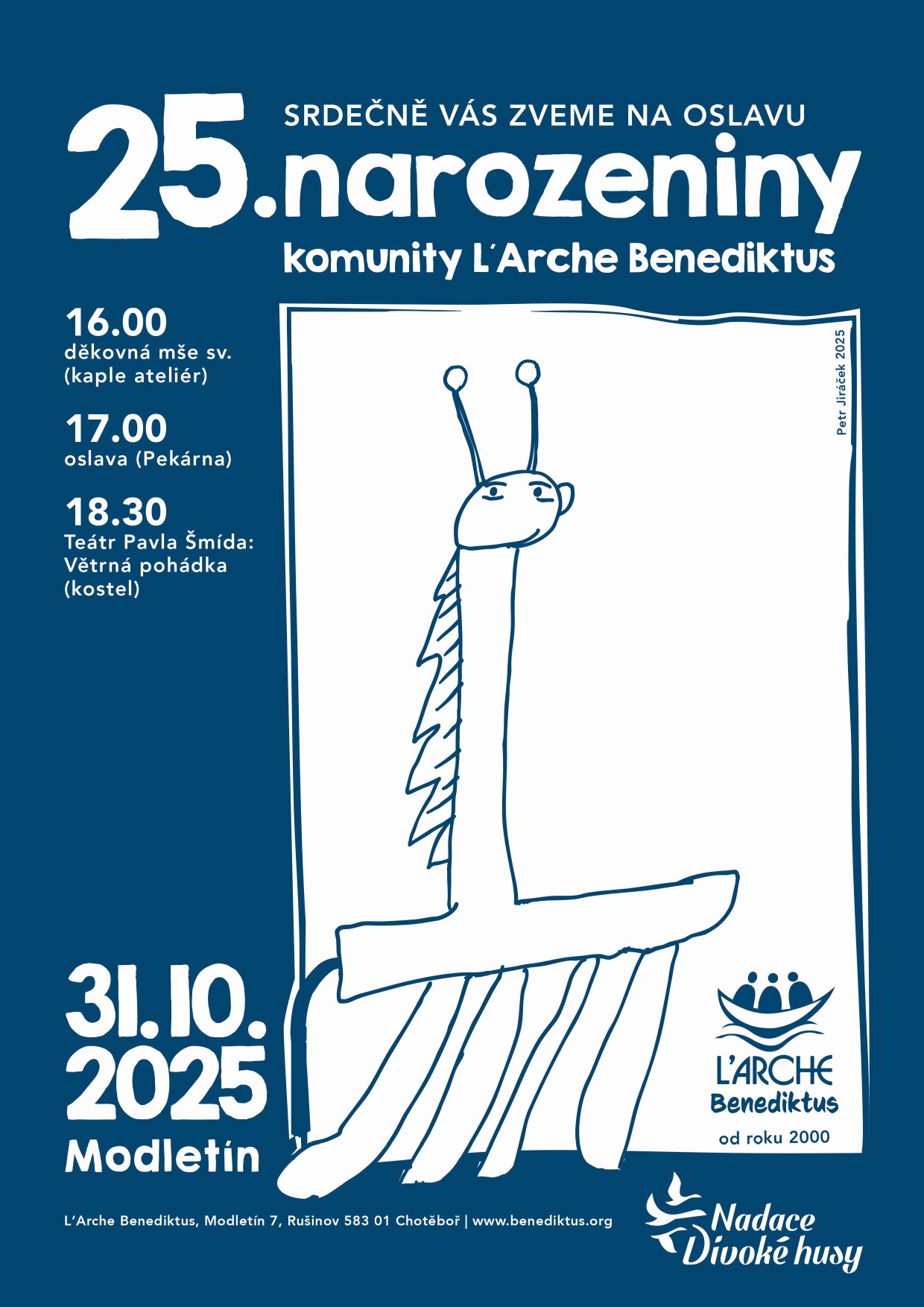 Oslavte s námi 25. narozeniny komunity L'Arche Benediktus! Vaším darem nejen podpoříte stavbu stabilního přístřešku na terase modletínské Fary, ale zároveň získáte super odměny, jako dobroty z naší sušárny nebo autorské tričko.
