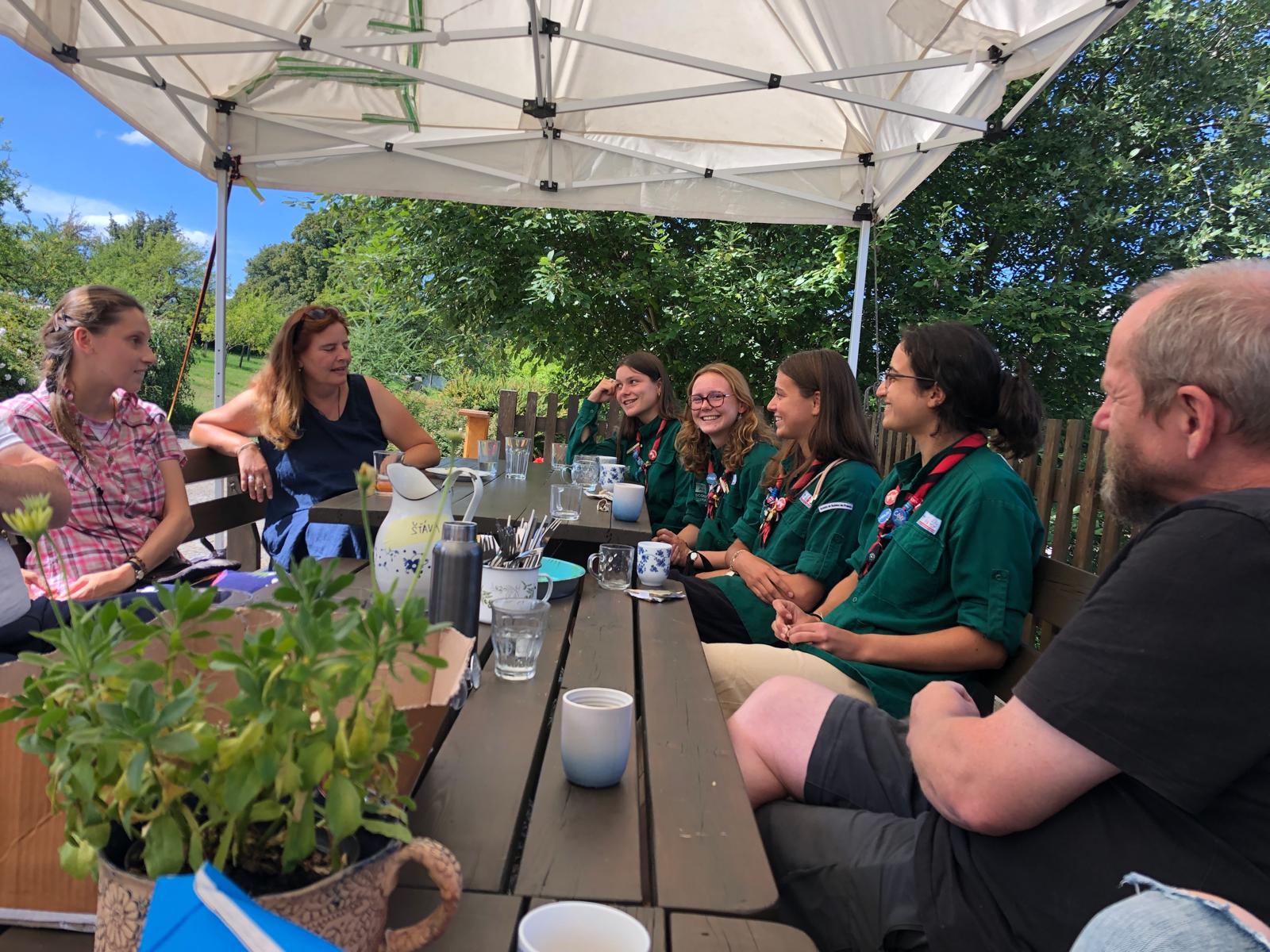 Přístřešek na terase u Fary Jistě jste už byli u nás na terase vedle Fary! Rádi se tam setkáváme, pracujeme, obědváme a taky vítáme návštěvy. Jak víte, před sluncem a deštěm nás tam schovává stan; rozmary počasí mu ale zároveň dávají zabrat. Místo tohoto provizorního řešení bychom rádi příští rok postavili pevný přístřešek.