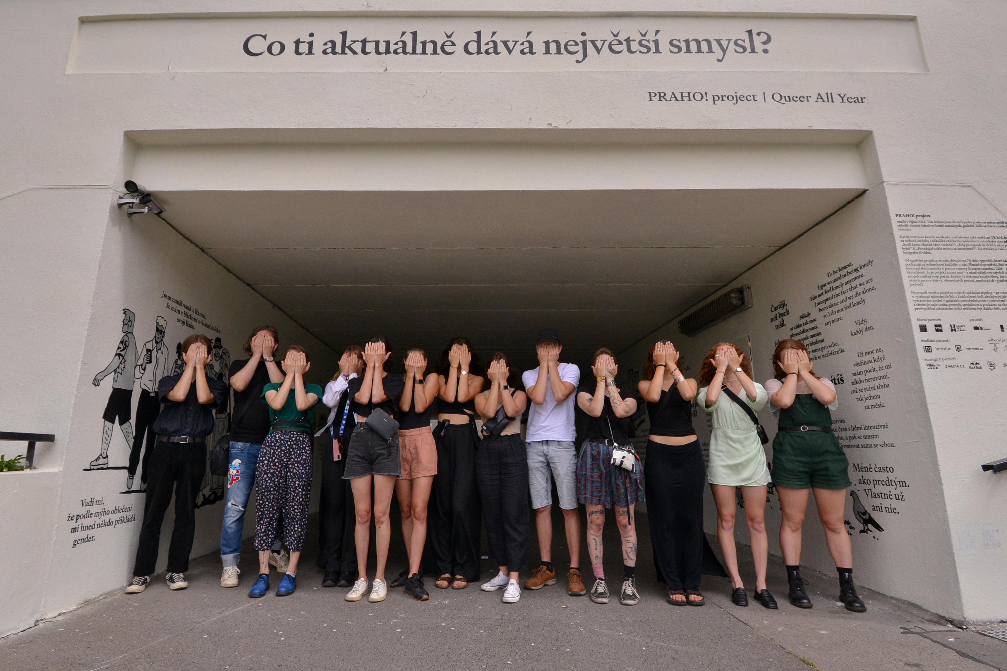 V podchodu na Fügnerově náměstí v Praze se už od roku 2023 nachází umělecká instalace s názvem Queer All Year. Možná jsi kolem ní někdy prošel*a. Možná jsi se u ní zastavil*a. Možná jsi si přečetl*a pár pocitů cizích lidí a něco z nich v Tobě zůstalo.