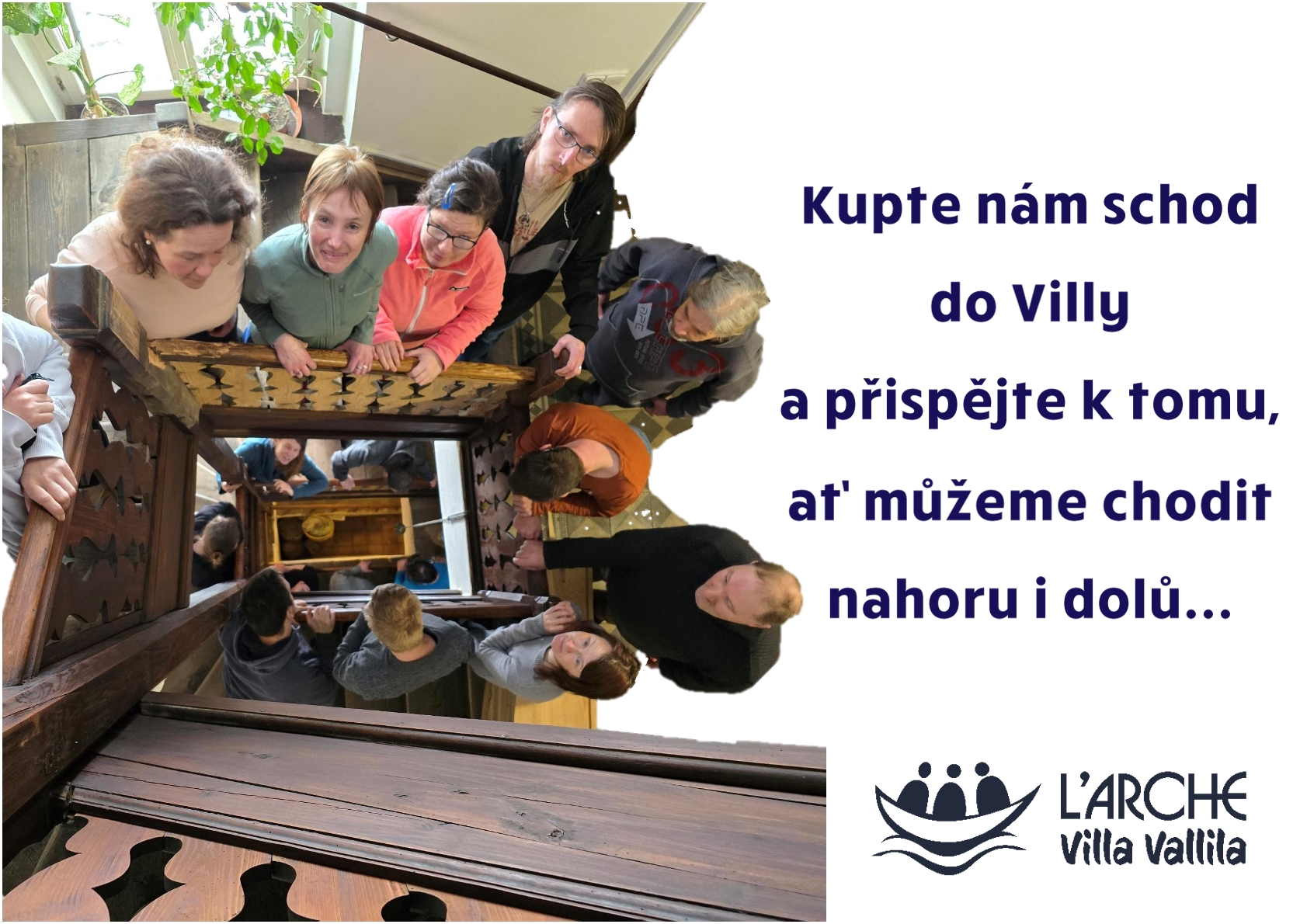 Dle nacenění nás vyjde jeden schod na 5.000 Kč. Kupte nám schod do Villy Vallily a přispějte tak k tomu, ať můžeme chodit nahoru i dolů! Za štědrý dar (5.000 Kč a výše) Vám rádi darujeme původní dubový schod nebo Vám z něj na přání něco pěkného vyrobíme v naší terapeutické recyklační dílně.