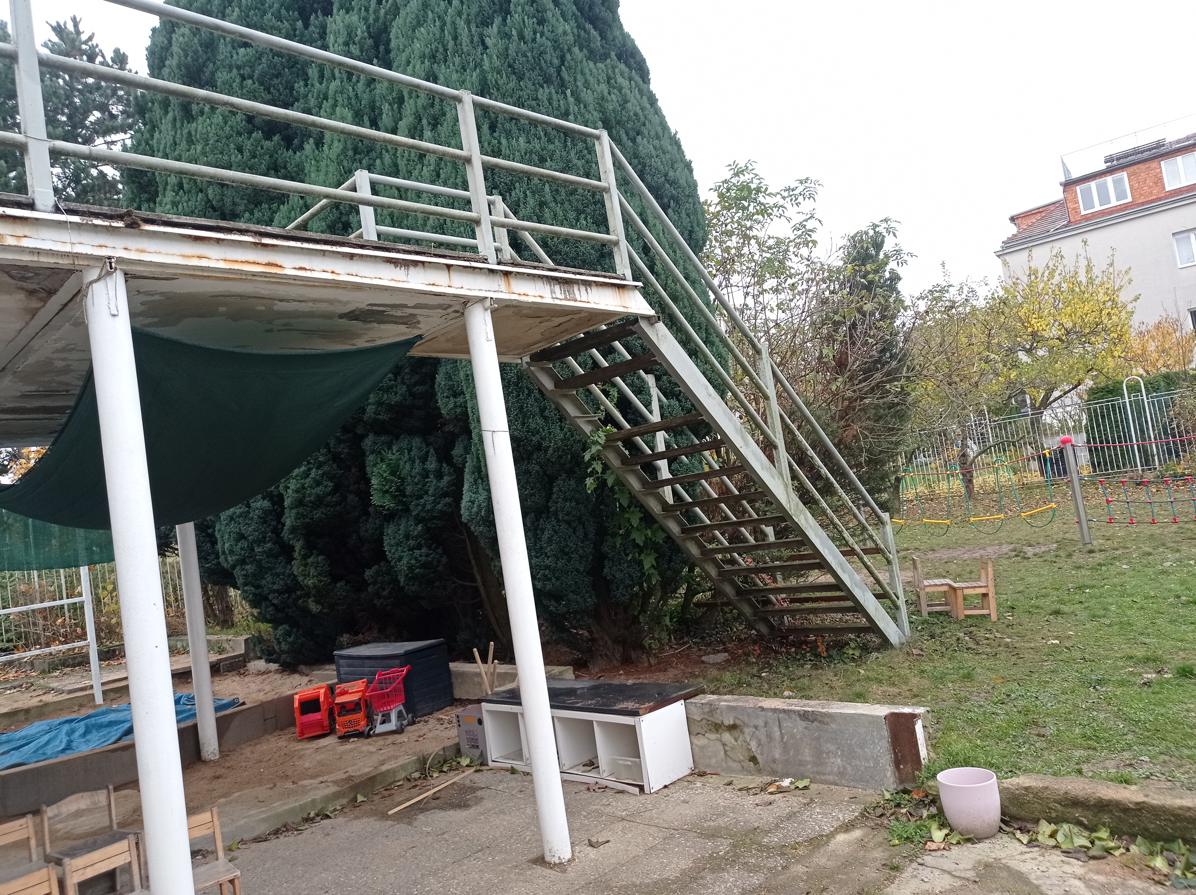Spolek Ponny z.s. pomáhá získat finanční prostředky na vybudování krásné, bezpečné a funkční zahrady s dětskými prvky a pískovištěm pro dětskou skupinu a školku Ponny. Zahrada bude sloužit i ukrajinským dětem jako místo pro rozvoj hrubé motoriky. Chybět nebude ani bylinková zahrádka a netradiční kulovité gumové koule k podpoře rovnováhy dětí. Kvalitně zpracovaná a zpěvněná plocha před pískovištěm bude bezpečná a navržená přírodní kuchyňka doplní dětem další možnost herního koutku. Máme již zpracovaný projekt a také jsme vybrali firmu vhodnou pro tvorbu dětských hřišť. Naše nová zahrada by mohla brzy vypadat takto: Původní stav zahrady vidíte níže. Lehká oprava vzhledem k nerovnosti povrchu není možná. Musí se udělat celková renovace povrchu kolem pískoviště, nová kuchyňka a prostor pro balony.
