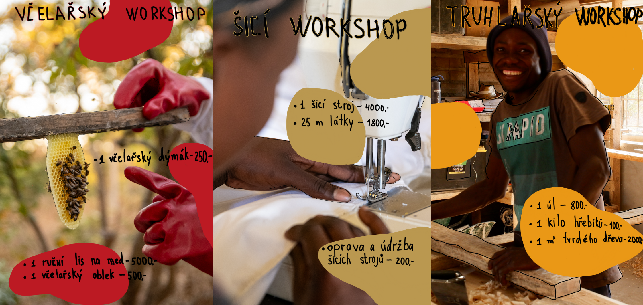 To už víc jak půl roku ladíme s vedením místní neziskovky po online meetech a nyní se potkáváme i osobně: Všechny tři workshopy — šicí, truhlářský i včelařský — tvoří pevný základ pro rozvoj místní komunity. Včelaři se učí chovat včely, pečovat o ně a vyrábět med, který následně prodají. V Kashitu jsou stovky proškolených včelařů, ale chybí jim potřebné vybavení. To jim mohou zajistit další dílny provozované místní neziskovkou. Od žen z šicího workshopu si včelaři mohou koupit ochranné obleky, které se nyní ženy učí šít. Od mladých truhlářů zase za dobrou cenu získají dřevěné komponenty pro své hliněné úly. Tyto věci mohou zaplatit rovnou nebo je mohou splácet v medu (tzv. naturálie, což je v Zambii stále existující způsob obchodování).