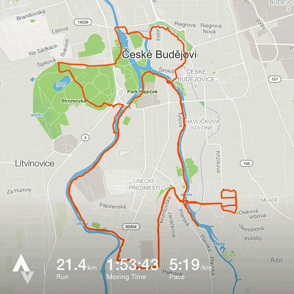 V sobotu jsem absolvovala svůj druhý tréninkový běh. Bylo to něco přes 20 km, na mapce je pouze cesta zpět s nezměřenými úseky. Během běhu jsme angličákovali, klikovali a žabákovali.... Byl to super trénink (Příprava na extrémní závody) s lidma z PPC ČB. Do půlmarathonu zbývají 2 měsíce, ale přispívejte dál, ať jsem na to opravdu ready! :) :D