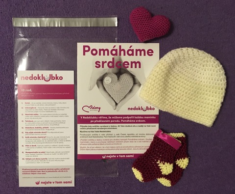 Pomáháme srdcem. Díky koordinátorkám Nedoklubka a šikovným tvořilkám podporujeme maminky po předčasném porodu v neonatologických centrech symbolickým purpurovým srdíčkem. K němu přidáváme brožurku s léčivým textem klinické psycholožky a Desatero pro rodiče po předčasném porodu. Dále ponožtičky z našeho ponožkového rekordu a nově také "Čepičku na doma". To vše kompletujeme do úhledných dárkových balíčků, ve kterých dostanou rodiče vše pohromadě. Náklady na výrobu jednoho balíčku činí 17,- Kč. ( Zahrnují zvýhodněnou cenu grafického zpracování a tisku brožurky a letáčků, celofánového sáčku a stužky... Ručně vyráběné dárečky i my získáváme darem od úžasných a zručných tvořilek a ty dále jejich jménem předáváme maminkám. Koordinátorky svou činnost vykonávají bez nároku na honorář. Díky společnosti Zásilkovna můžeme dárky koordinátorkám posílat zdarma...)