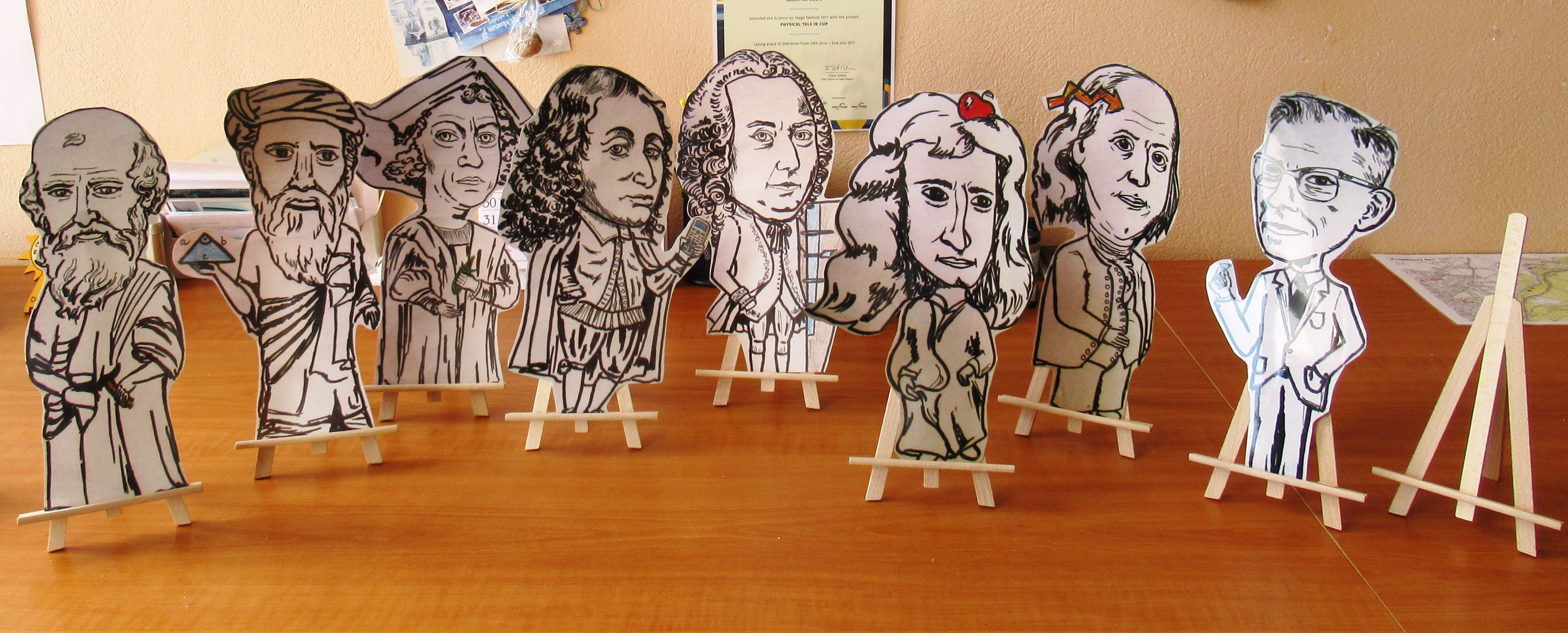 Představíme zde dvanáctku slavných vědců a ojevitelů, jejich vynálezy, objevy a zákony, ale hlavně také jednoduché fyzikální experimenty, které daný objev či zákon ilustrují a vysvětlují. Tady vidíte první osmičku vědců a objevitelů. Poznáte je?