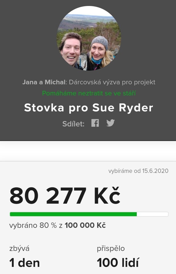 Vojtovi a Vašíkovi za nadšené sledování tachometru příchozích darů a příslib společných běžeckých tréninků!
