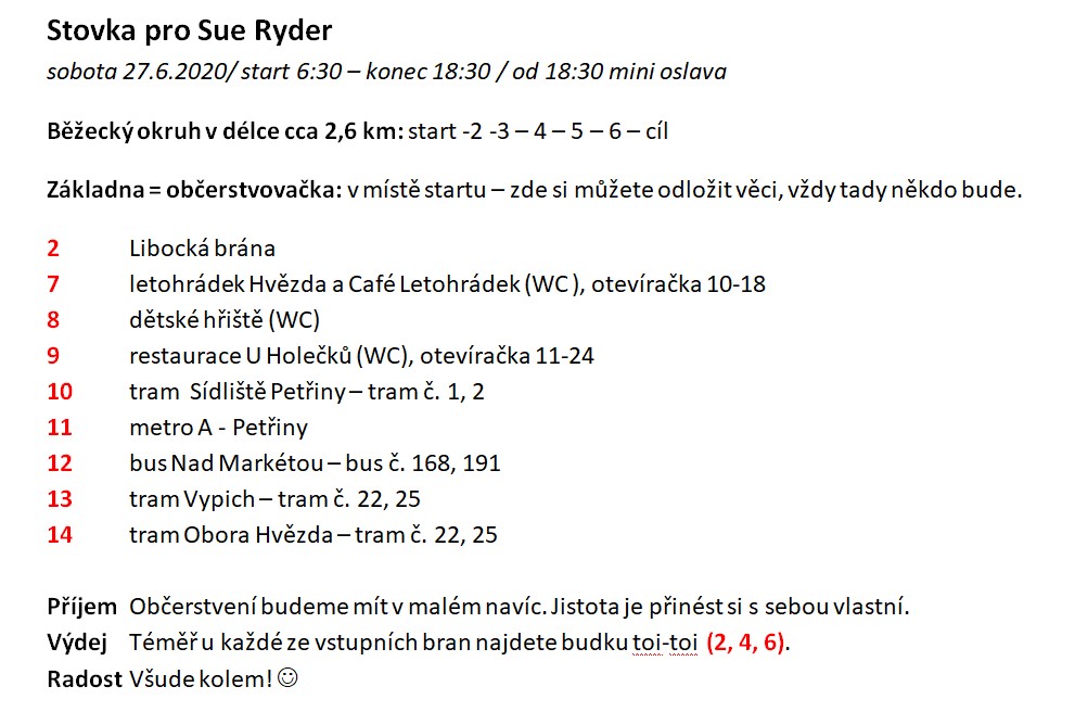 Pro všechny, kteří se k nám budete chtít ve Hvězdě přidat - zaběhat si, zamávat nám, povzbudit - přikládáme info.