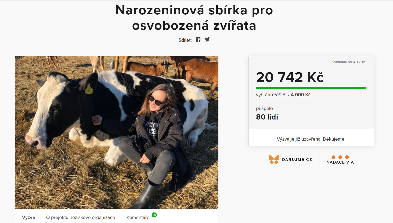 Před 2 lety se nám společně povedlo vybrat přes 20.000,- Kč pro zvířata z Farmy Naděje. Do teď na ten krásnej pocit z darovaných financí pro zvířata ráda vzpomínám. A to už jen proto, že jsem ani ve snu netušila, že se vybere taková částka...