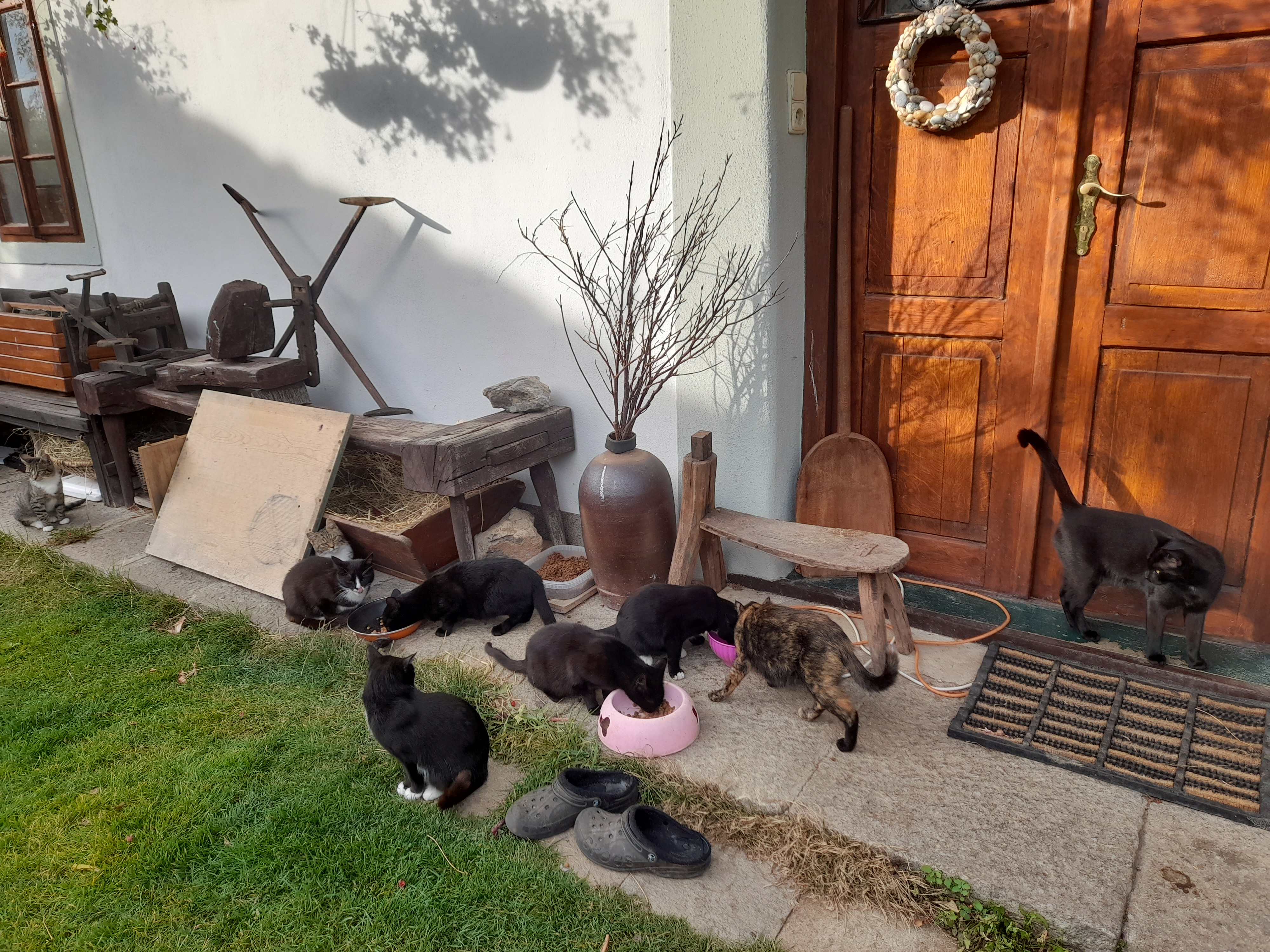 Dobrý den, ráda bych požádala o pomoc hodné lidičky, kterým osud toulavých koček není lhostejný.. Žijeme v Praze s pejskem a dvěma kocourky, kterých jsme se ujali a pravidelně jezdíme na chalupu na Domažlicku. Vlastně poslední týdny je to spíš obráceně. Jsme převážně tady a jezdíme na otočku do Prahy. A zde se problematika toulavých koček stává pro nás neúnosnou.."Naše" venkovní kočičky, kterých jsme se předloni ujali, když k nám přivedla v listopadu zatoulaná kočka koťátka,(tím to začalo), jsou již socializované, vykastrované a zabezpečené, konečný počet pět. Ale koncem léta přestala sousedka krmit kočky, o které se stejně jako my kdysi začala starat a nastalo peklo, všechno to začalo chodit k nám. A to za situace, kdy se jí již čtyři kočky namnožily. V současné době nám přibyli dva kocourci, šest koček a zatím šest koťat od dvou z nich. Další kočičce kotě přejelo auto, druhé někam zmizelo. Čtvrtá kočička porodila nedávno, ale koťata se "zatím" nacházejí na cizím pozemku, počet neznáme. Celá smečka se postupně stěhuje k nám. Krmení pro naše venkovky nelze oddělit a ani bych neměla to srdce nechat ostatní o hladu, ale jsme již na hranici finančních možností. Krmíme granulemi Brit premium, občas mixneme s jinou značkou, ale úplně levné a nekvalitní granule jim dávat nechci. Když z chalupy odjíždíme, nechávám kila granulí kočičkám do zásoby. A podle počasí i počet konzerv, aby se nezkazily nebo naopak nezmrzly, (kupujeme v dm) Pokud jsme tady, snažíme se jim kromě toho přilepšit jak se dá, maso, vývar apod. Spolupracujeme s kastračním programem Kasprocats, který nám doporučil náš veterinář. K dnešnímu dni se podařilo vykastrovat tři z těchto kočiček, schválená je další kastrace. Některé kočky se bojí a odchyt opravdu není jednoduchý. Zakoupila jsem k tomuto účelu přepravku pro psa s otevíráním shora. Na kočičku hodím silné povlečení na polštář, do kterého jí zabalím a dám rychle do přepravky. Toto jediné se nám osvědčilo, když jsou kočky polodivoké. Se zmíněnou sousedkou není řeč, už se rozhodla nekrmit a starosta obce nespolupracuje, zkoušeli jsme to. Prý pokud krmíme, tak jsou podle něj naše..Bojím se i nemocí, které by mohli přinést, ale není v našich silách nechat všechny ještě naočkovat, což je opět spojené s odchytem a financemi. Zatím k nám přinesli aspoň blechy, takže další výdaje, zprvu za prostředky, které nefungovaly, teď už snad aspoň zabírají, po poradě na doporučené veterině. Odčervit se nám povedlo zatím všechny dospěláky a tři větší koťátka, která už jsme trochu socializovali.. Mám velkou prosbu; nemohli byste nám, prosím, jakkoliv pomoci s krmením???🙏🙏🙏Už jen vzdálenost na chalupu, místa odkud manžel, dnes již v důchodu, pochází, nás finančně limituje, ale snažíme se dělat maximum, abychom nenechali kočičky dlouho samotné, nikoho jiného nemají. Vše se však zdražuje, včetně paliv a energie a opravdu nevíme, jak dlouho to budeme moci dál zvládat..😔Za konzervy utratíme asi 2000,- měsíčně, granule asi 1500,- ostatní nepočítám. Budeme moc vděční za jakoukoliv vaši pomoc, obzvlášť nyní, když se blíží zima. Kdybyby třeba zbylo něco, co vaši mazlíčci nechtějí..Moc prosíme o pomoc...🙏🙏🙏Nacházíme se v Němčicích u Kdyně. S pozdravem Kateřina Egerová