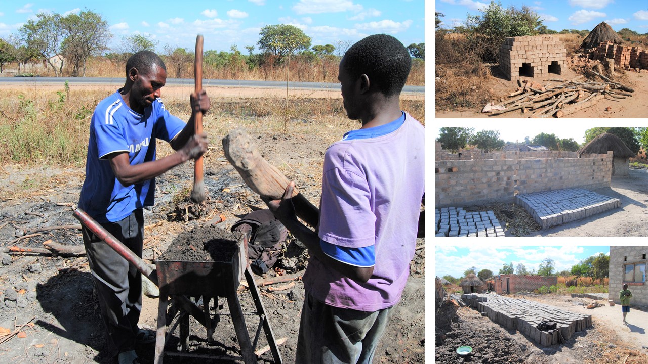 Budovy budou postaveny z nepálených hliněných cihel, které mají v Zambii dlouhou tradici