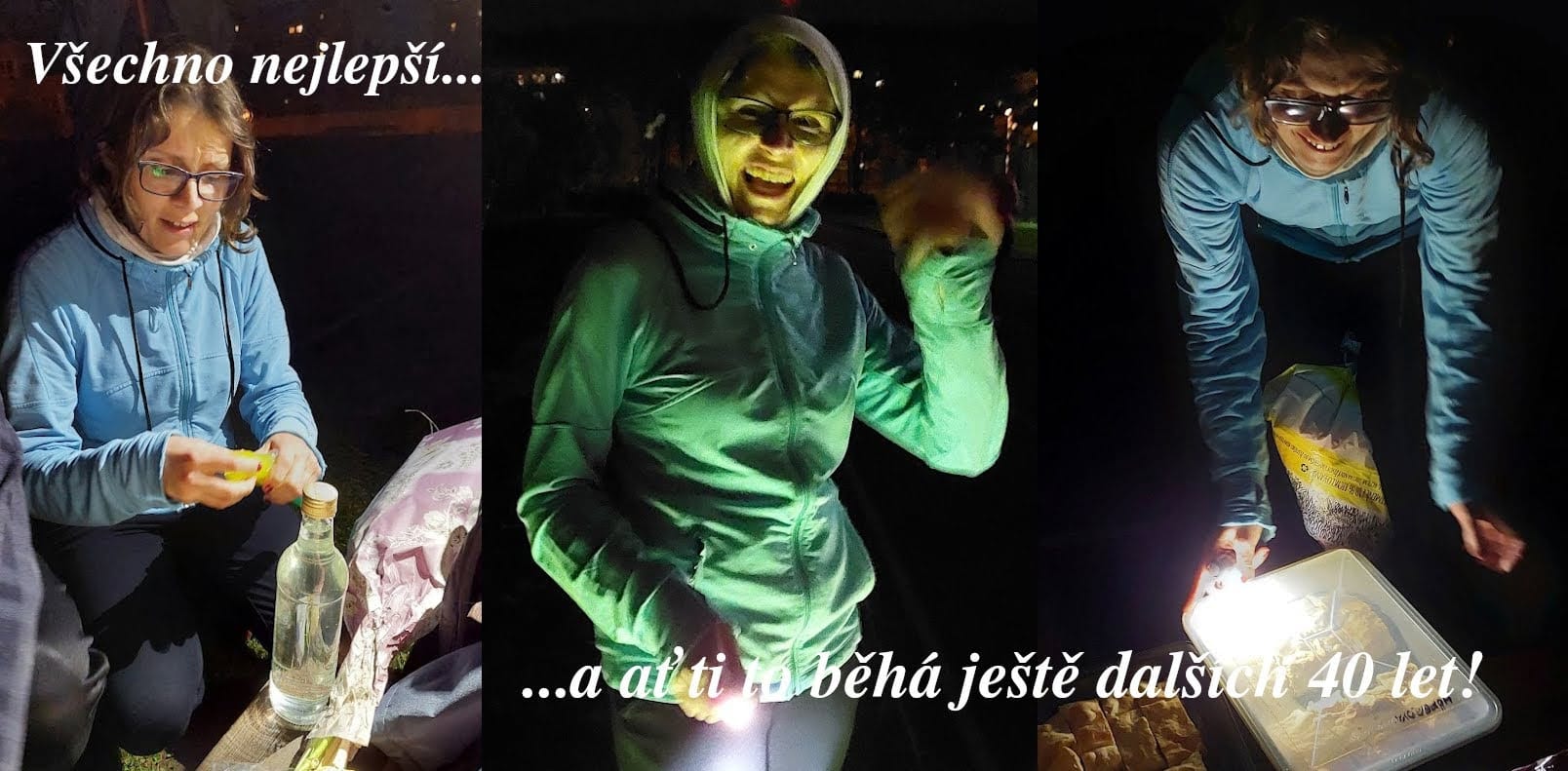 First birthday celebrtation in the dark! Yesterday I celebrated a birthday for the first time in the dark! It's a bunch of people with whom I run in Prague 8. I have a flashlight with me, which has a luminosity of up to 1000 lumens (maybe 1200), a wider and longer range, which I won't even take, but it will definitely make me light so that I can even run in the dark. 🙂
