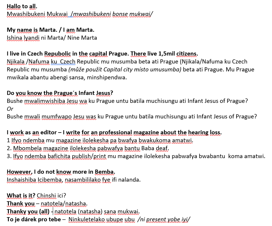 My basic vocabulary in Bemba language: