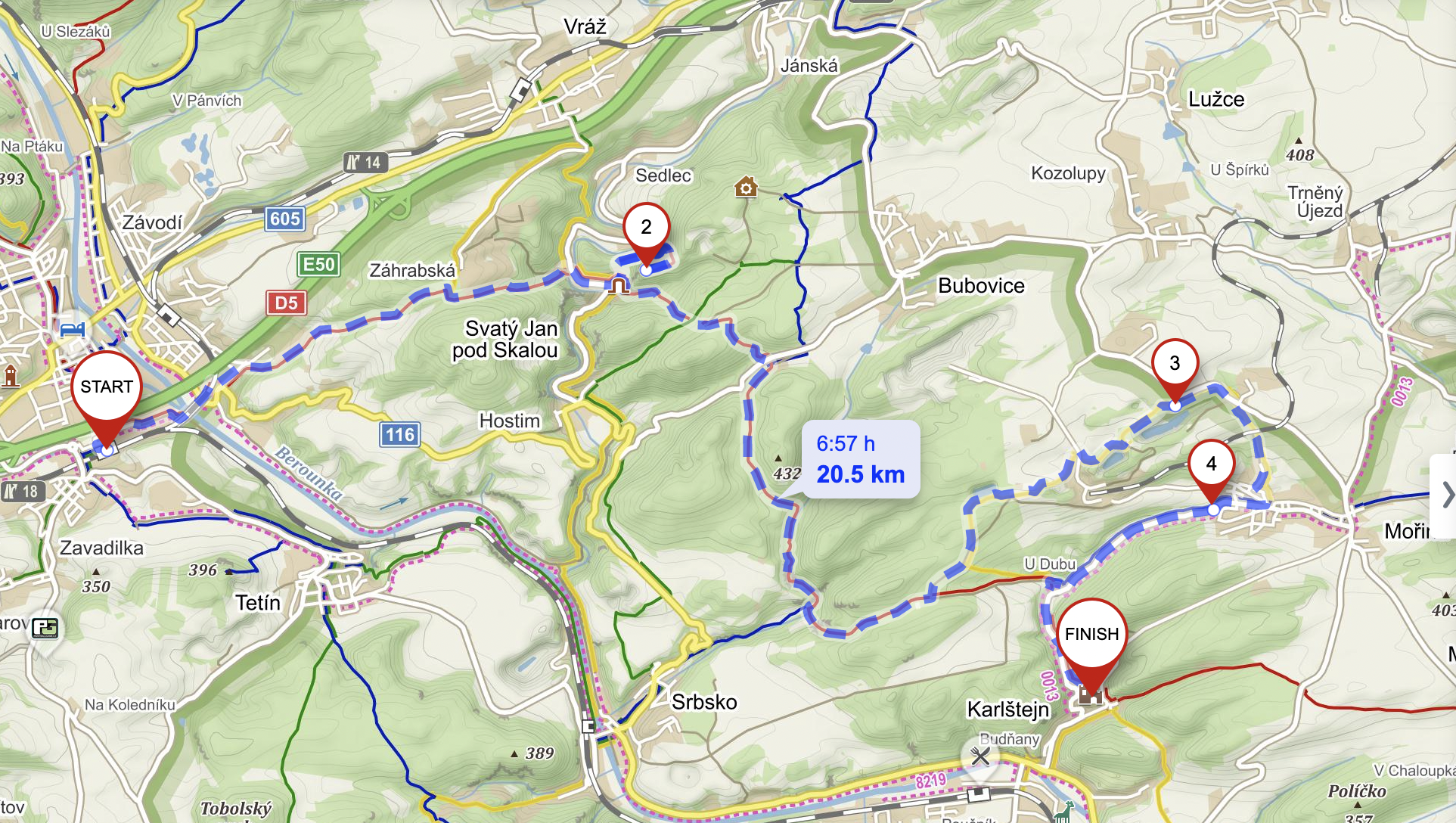On Sunday, April 3rd we will walk 20km through the Czech countryside, from the city of Beroun to the famous Karlštejn castle, via the scenic village of Svaty Jan pod Skalou and the Velká Amerika quarry.